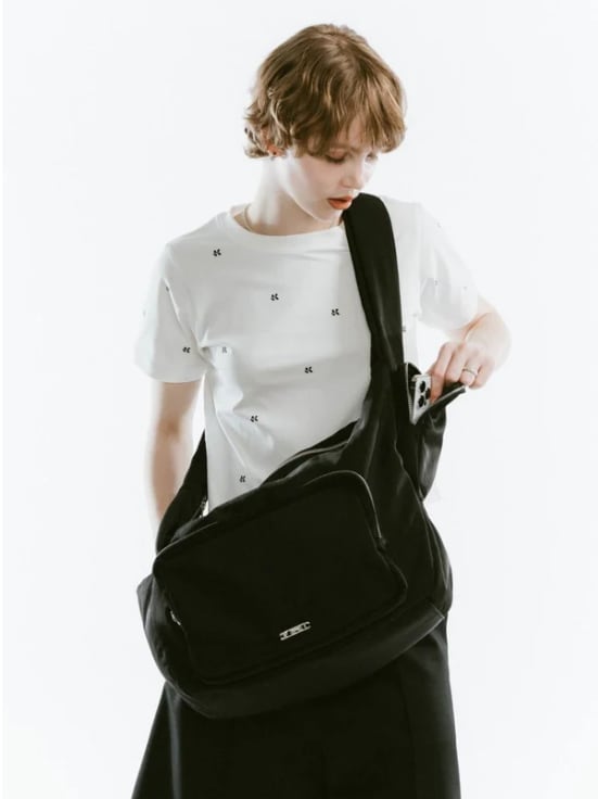 柔らかな丸みを帯びた形状で、肩やクロスボディに掛けたときに馴染みます。