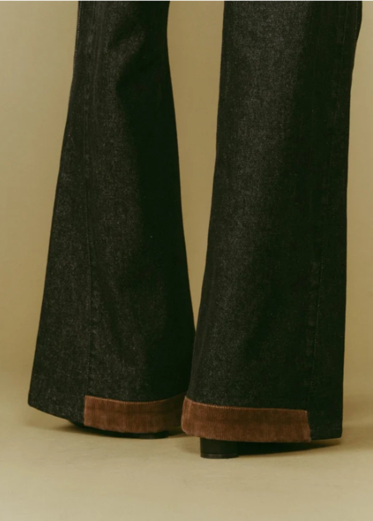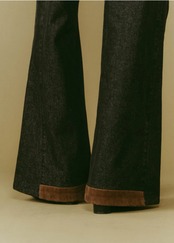 セブンティーズ風にリメイクしたようなフレアパンツ。