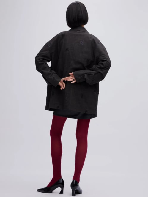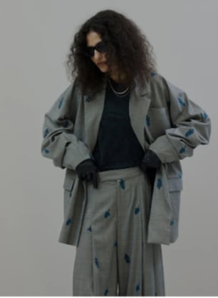 チェック生地に全面花柄モチーフの刺繡を施したジャケット!