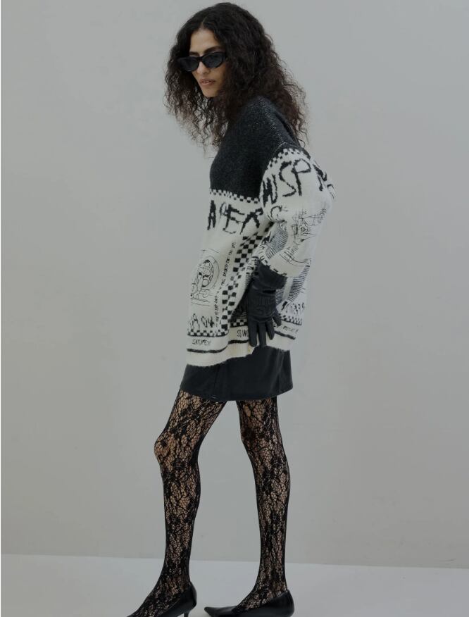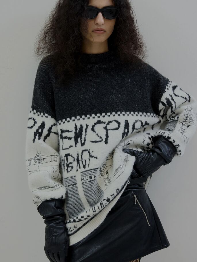 オリジナルのニュースペーパー柄ジャガードニットトップス!