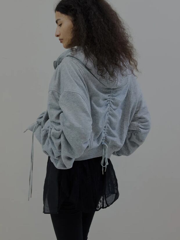 大胆に入ったギャザーディテールがポイントのジップアップフーディー!