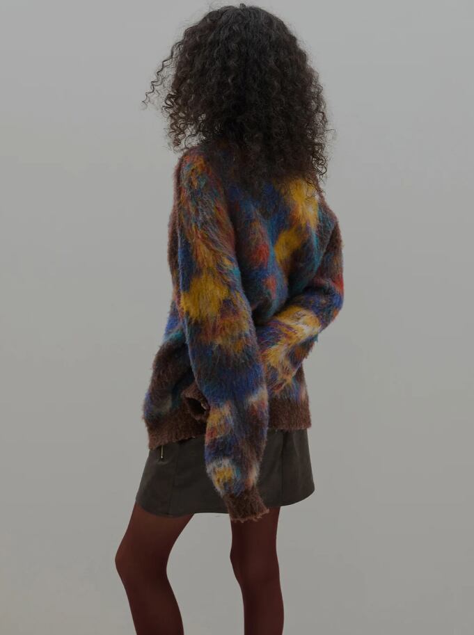 ぼやけた花柄のモヘアニットトップス。