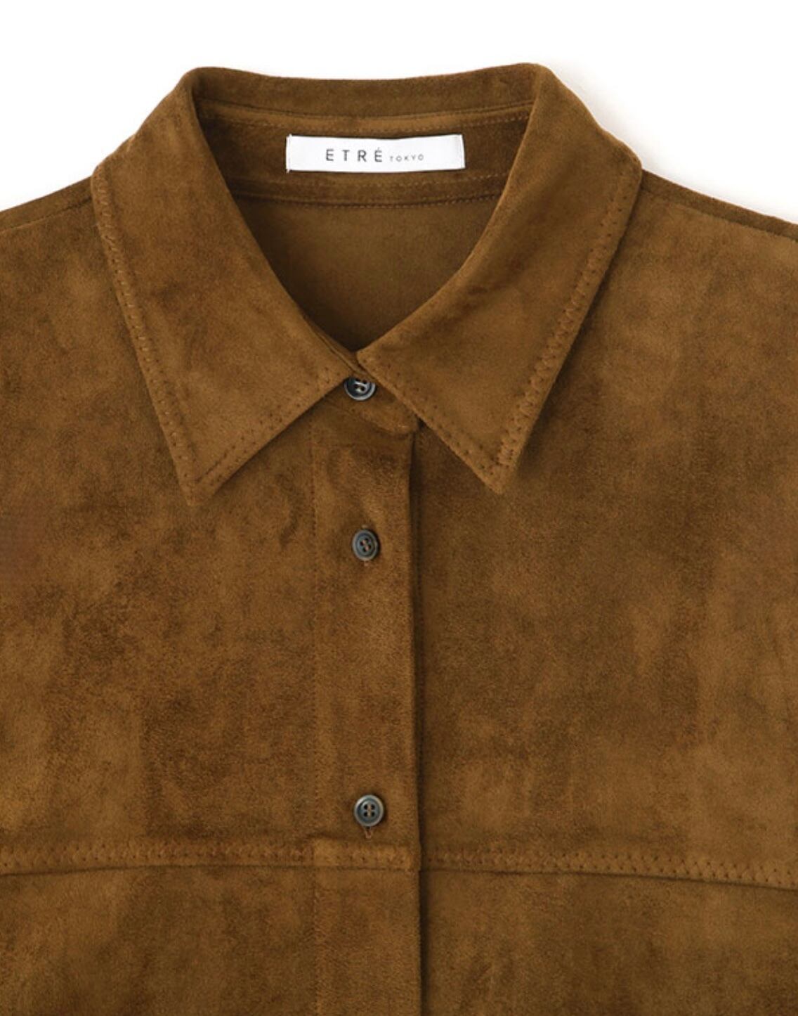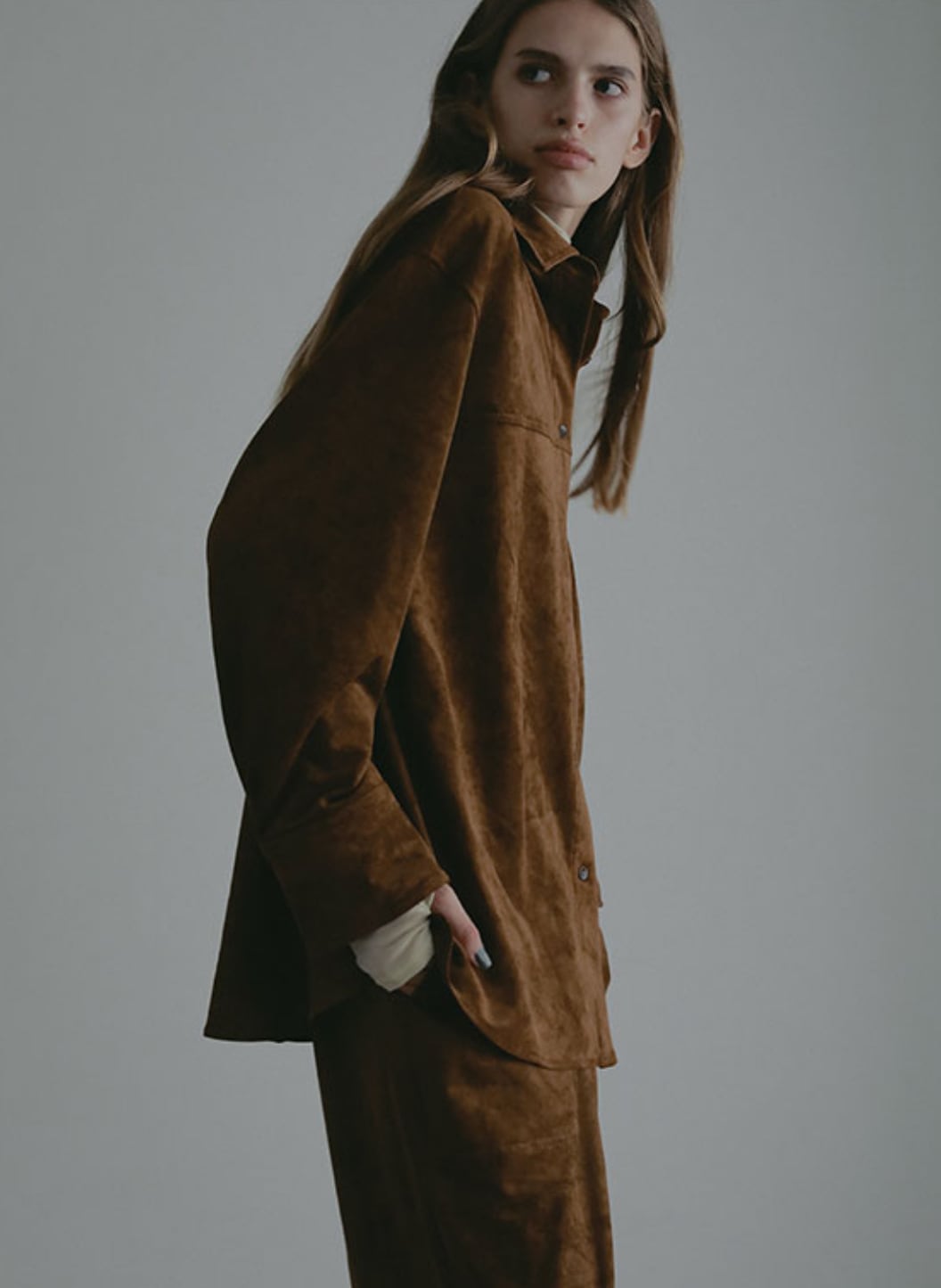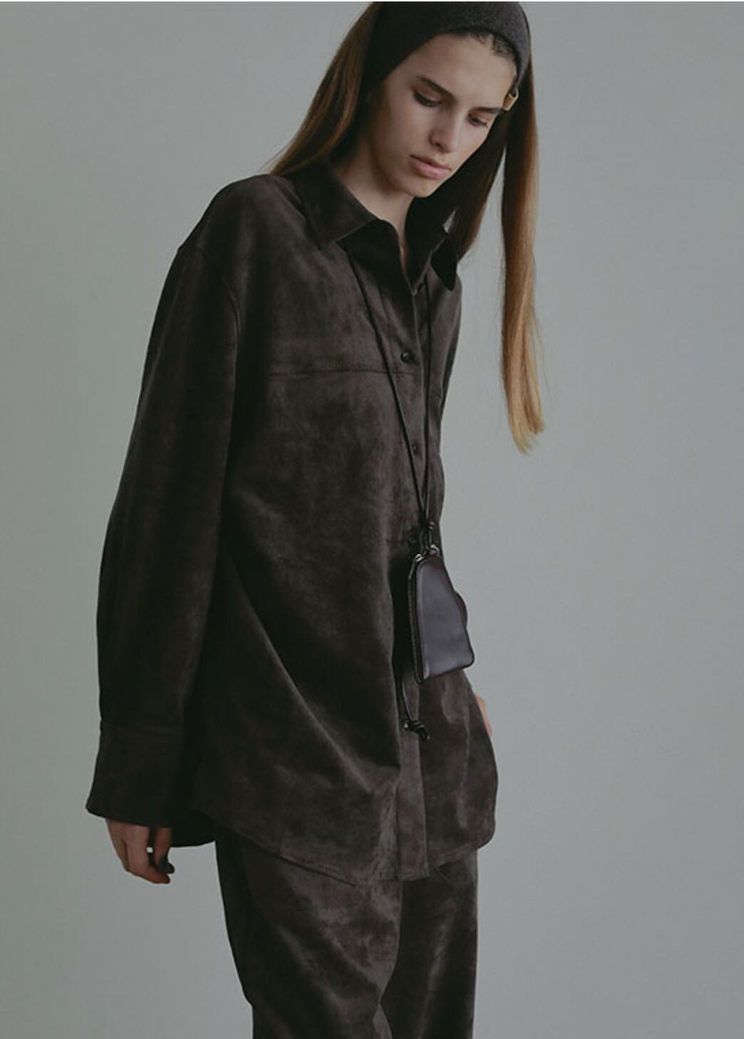 上品なマット感と奥行きのある表情が魅力の、フェイクスウェード素材のオーバーサイズシャツ。