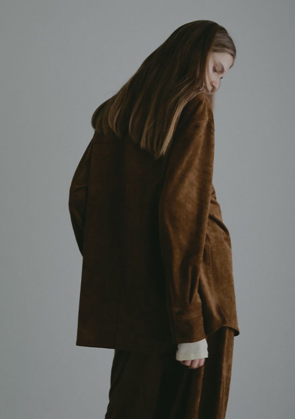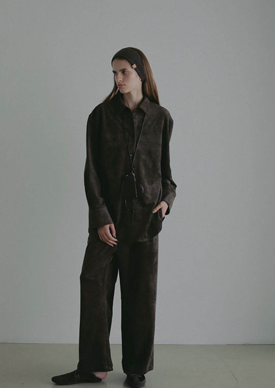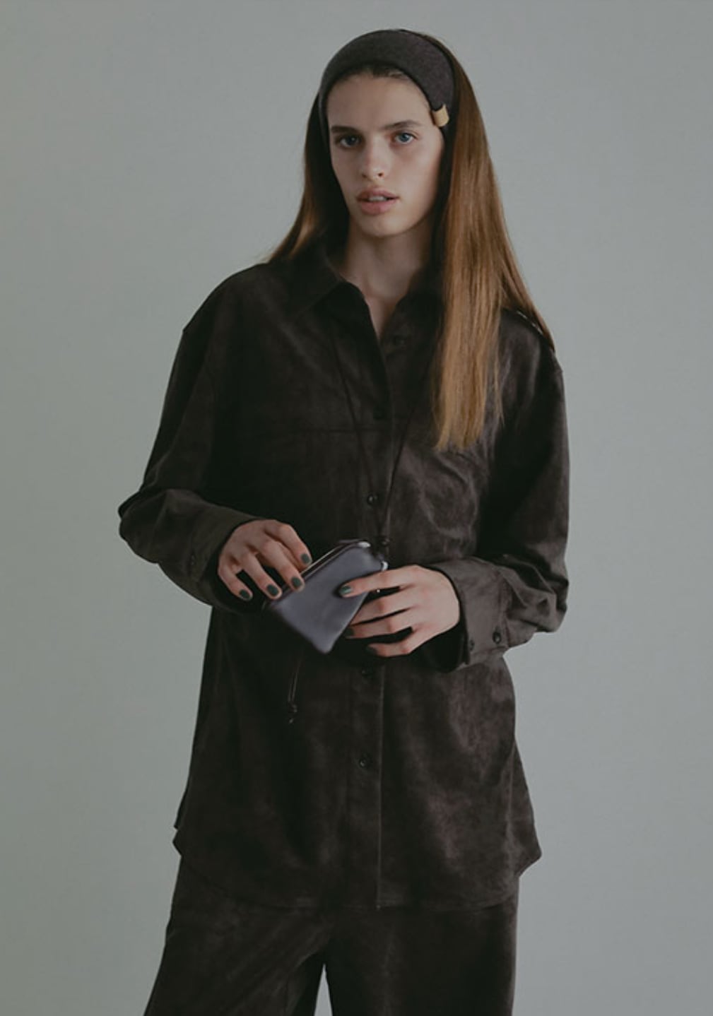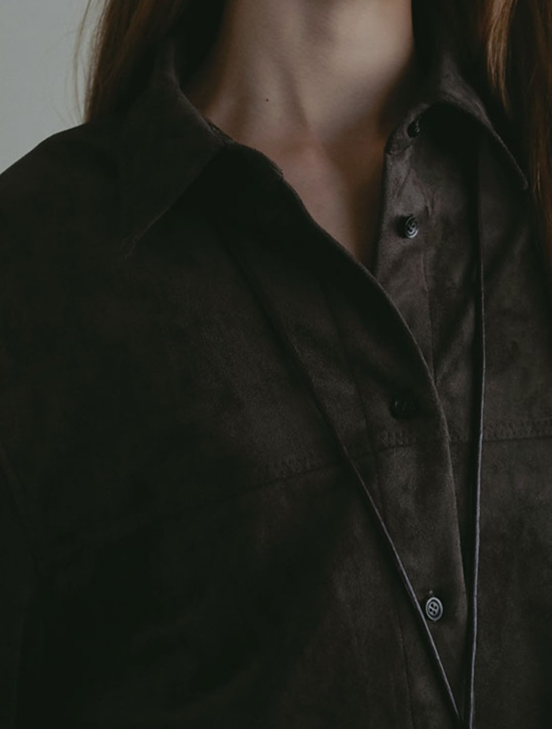 上品なマット感と奥行きのある表情が魅力の、フェイクスウェード素材のオーバーサイズシャツ。