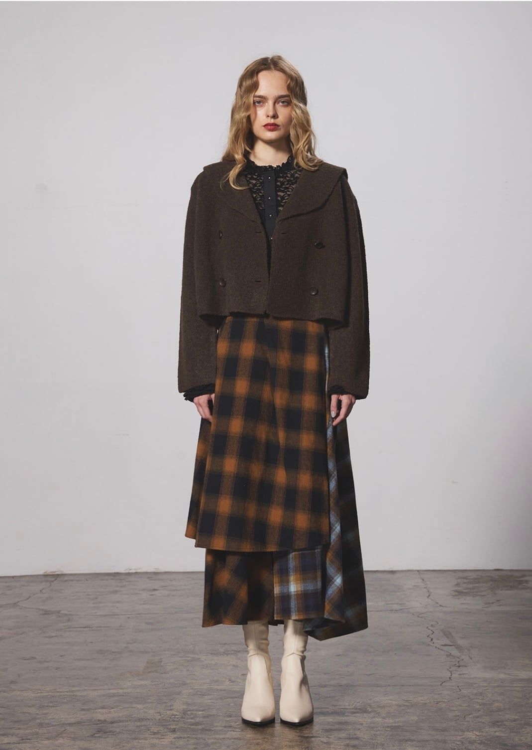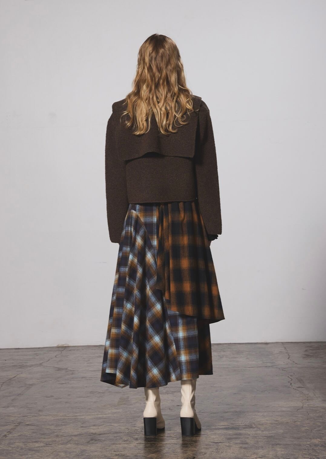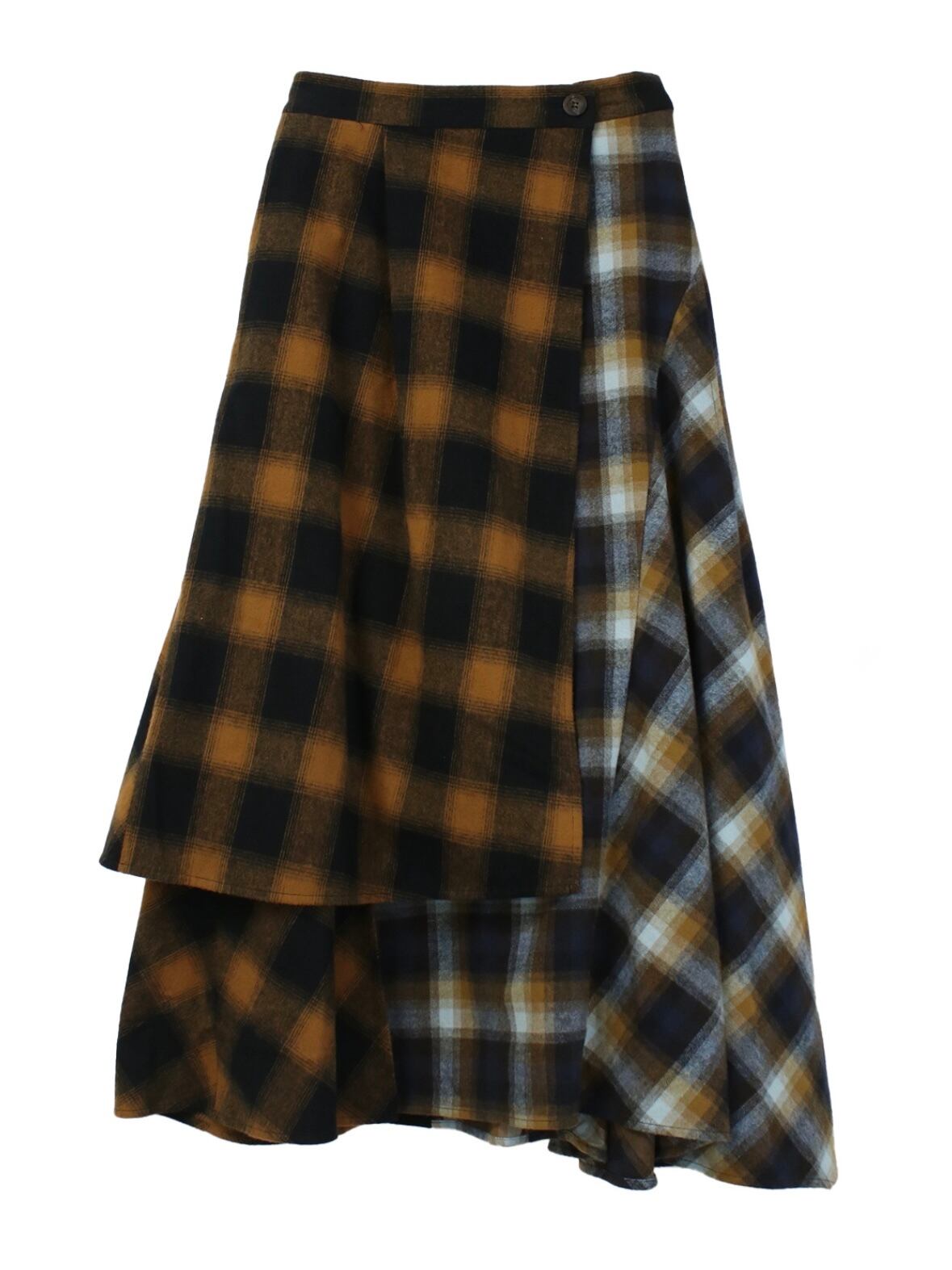 2種類のチェックを組み合わせた、分量たっぷりのフレアスカート。