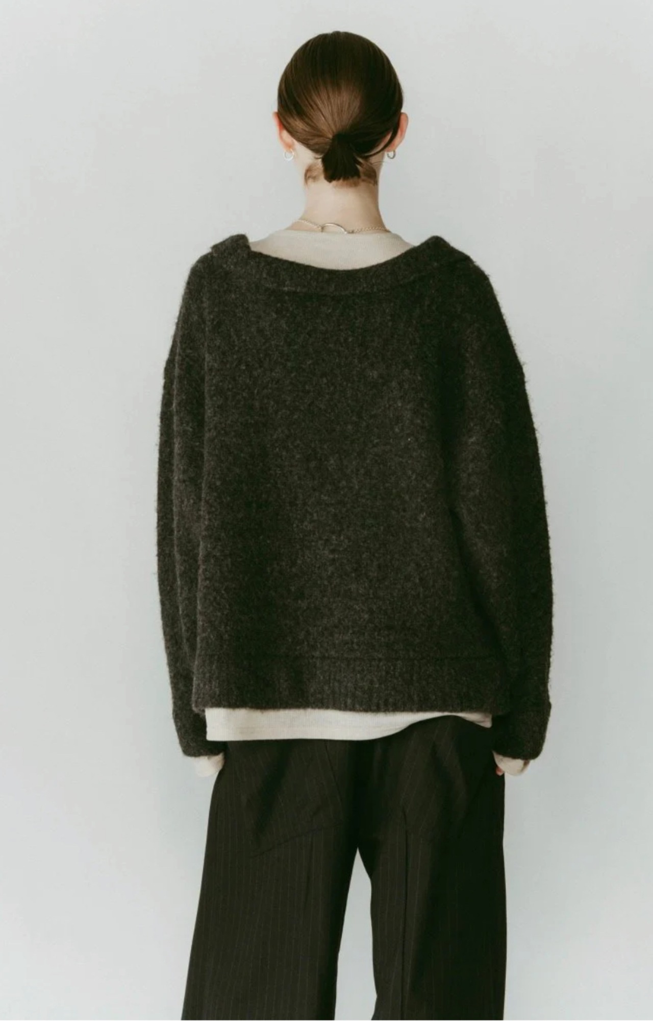 あえてゆるく設計された襟元とリラックス感のあるシルエット。