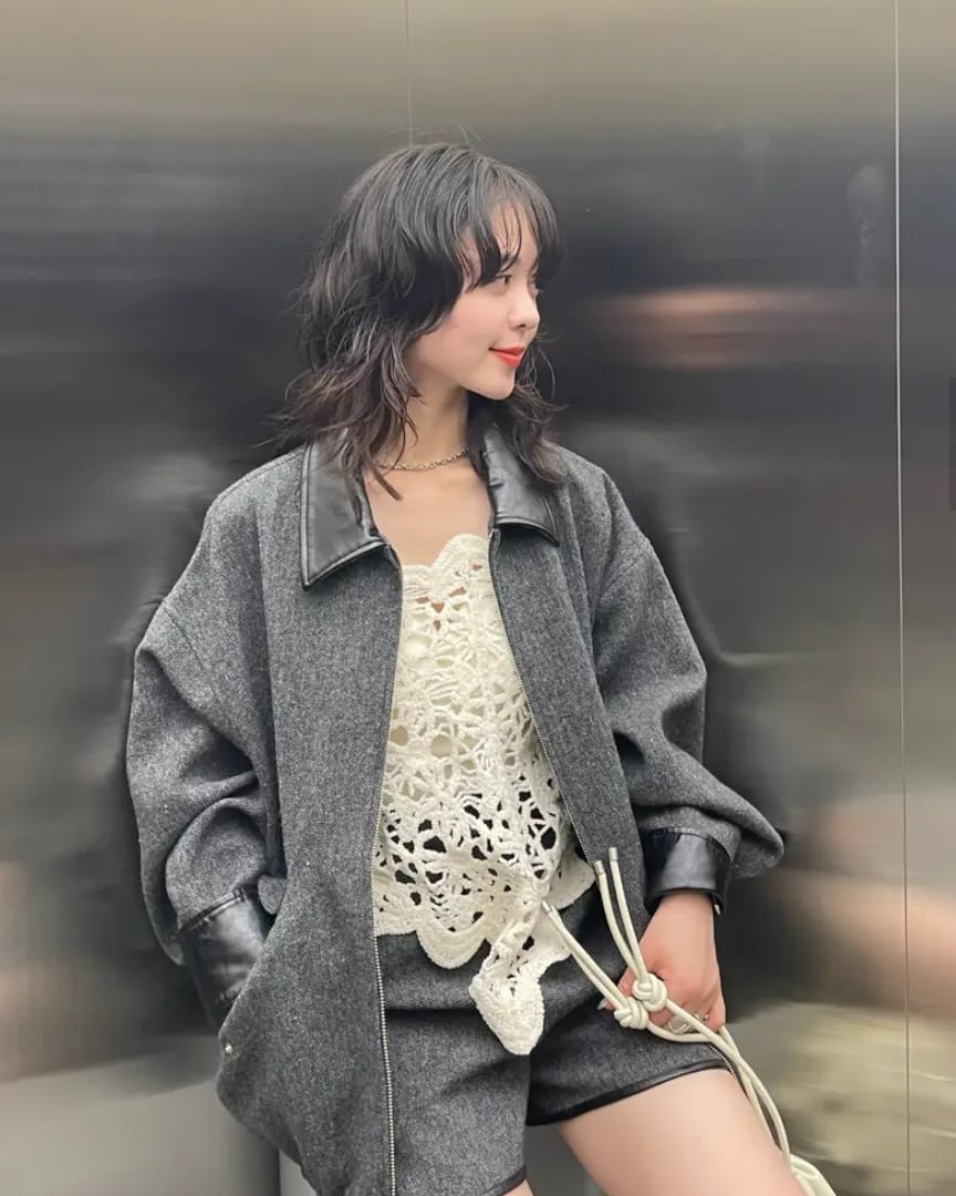 ツイード素材を使用したオーバーサイズシルエットのブルソン。