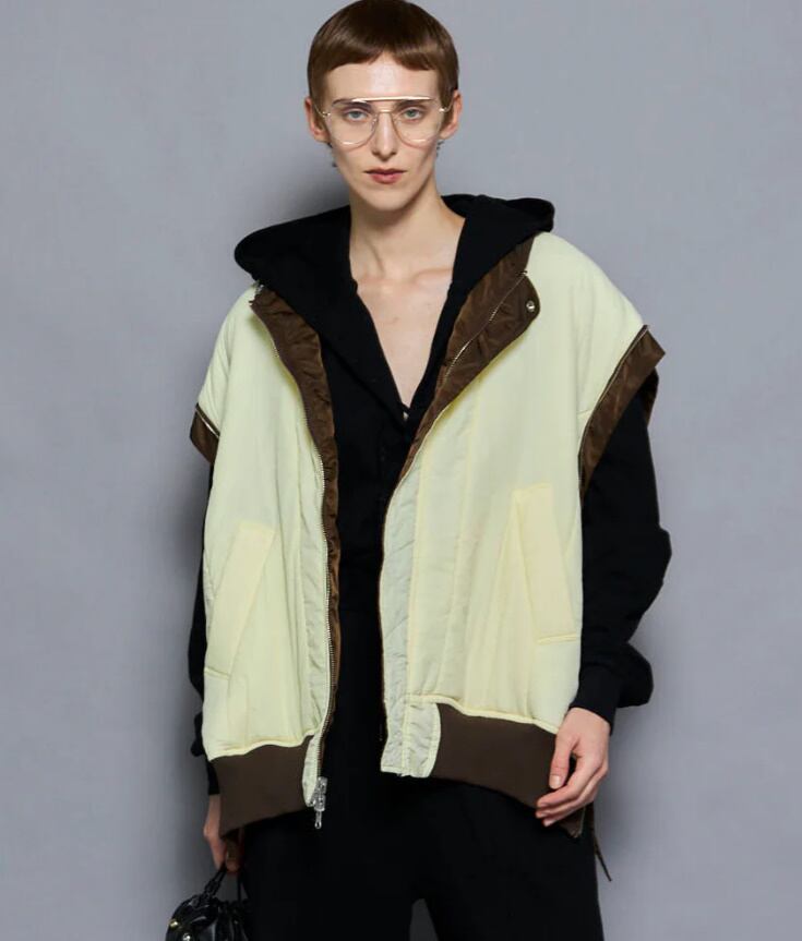 リバーシブルで着用可能なマルチウェイで、表面と裏面で配色に仕上げ、また袖も取り外しができるためスタイリングに合わせて様々な着こなしが楽しめます。