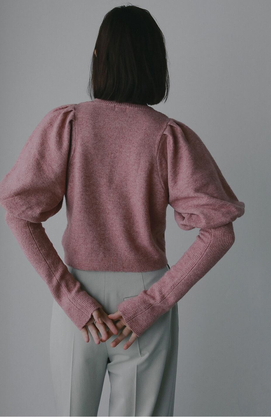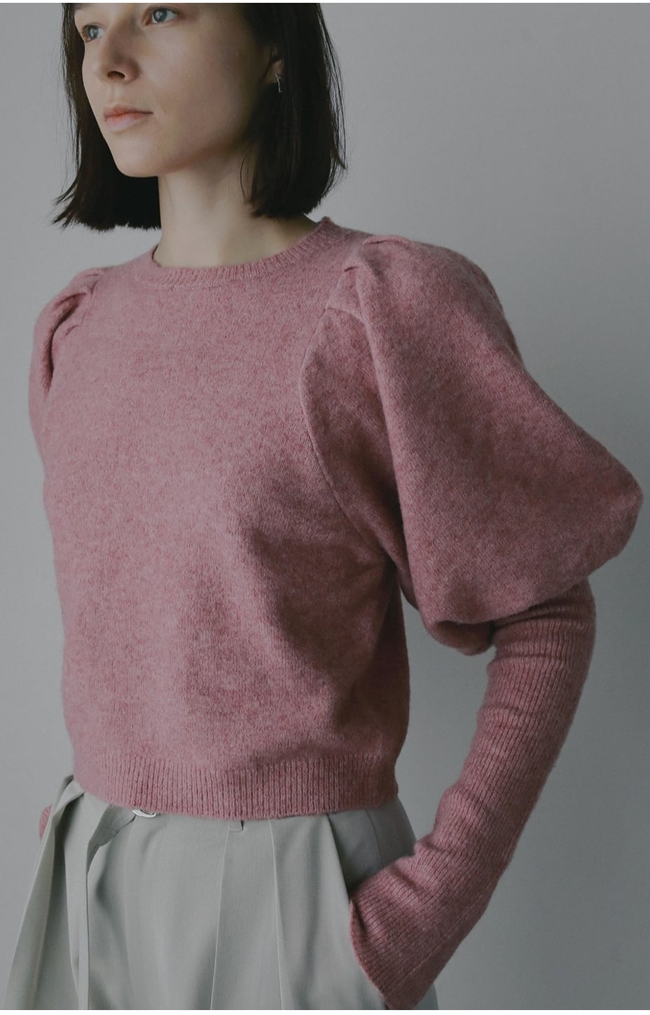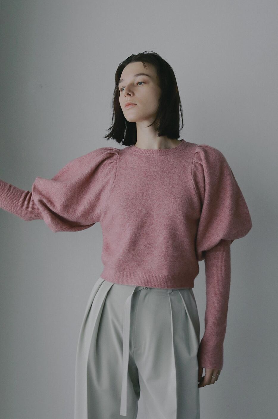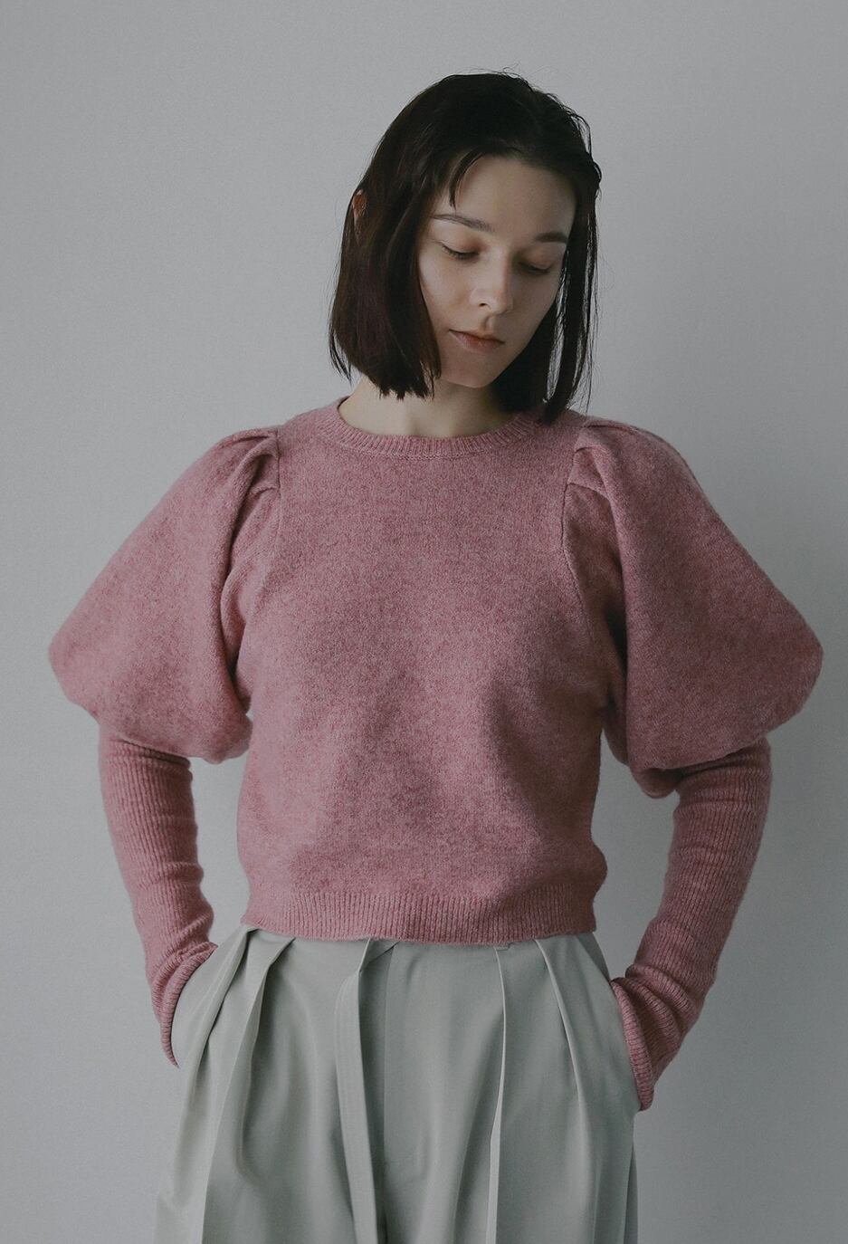 肘上までのパフスリーブが特徴的なニットプルオーバー。
