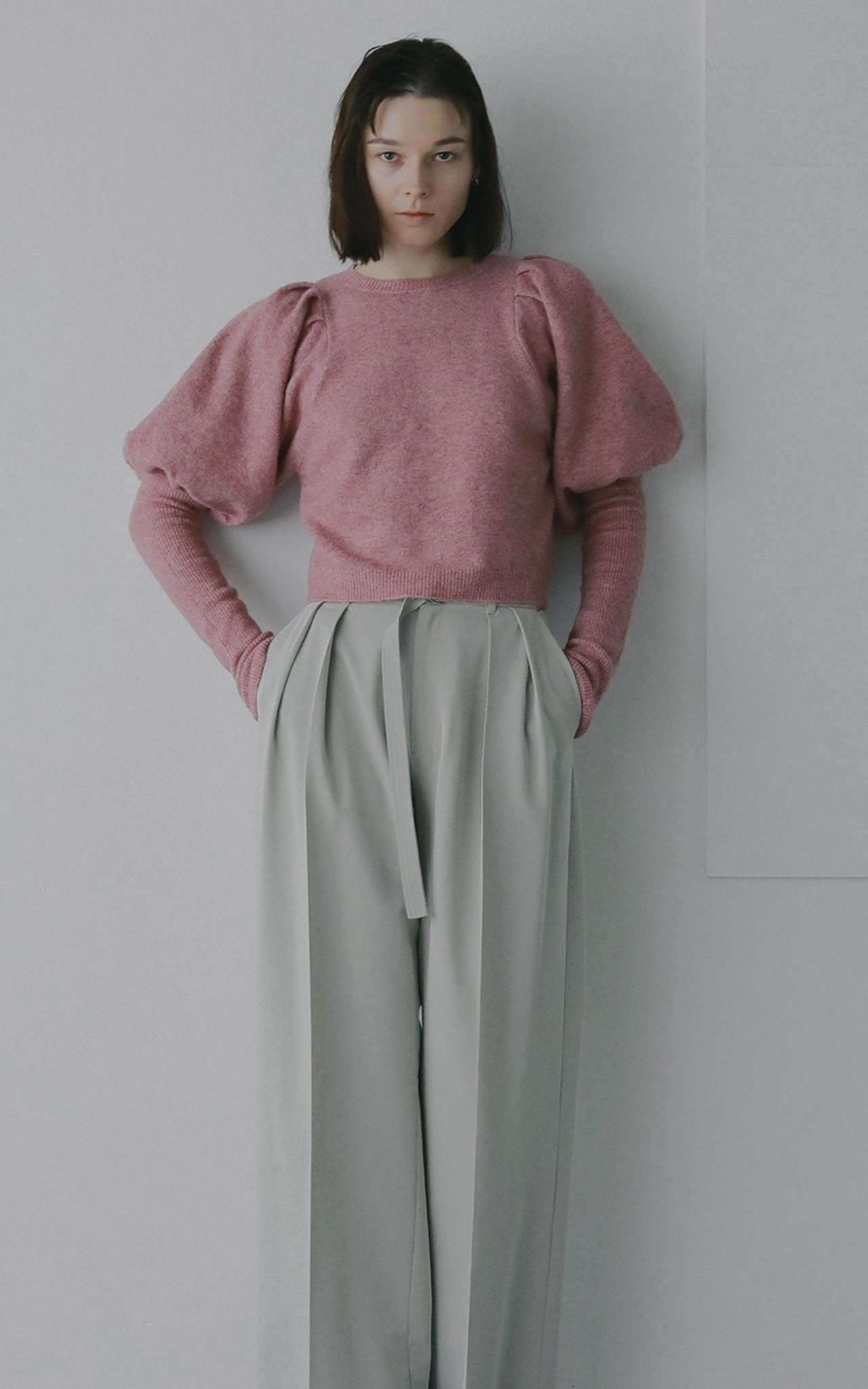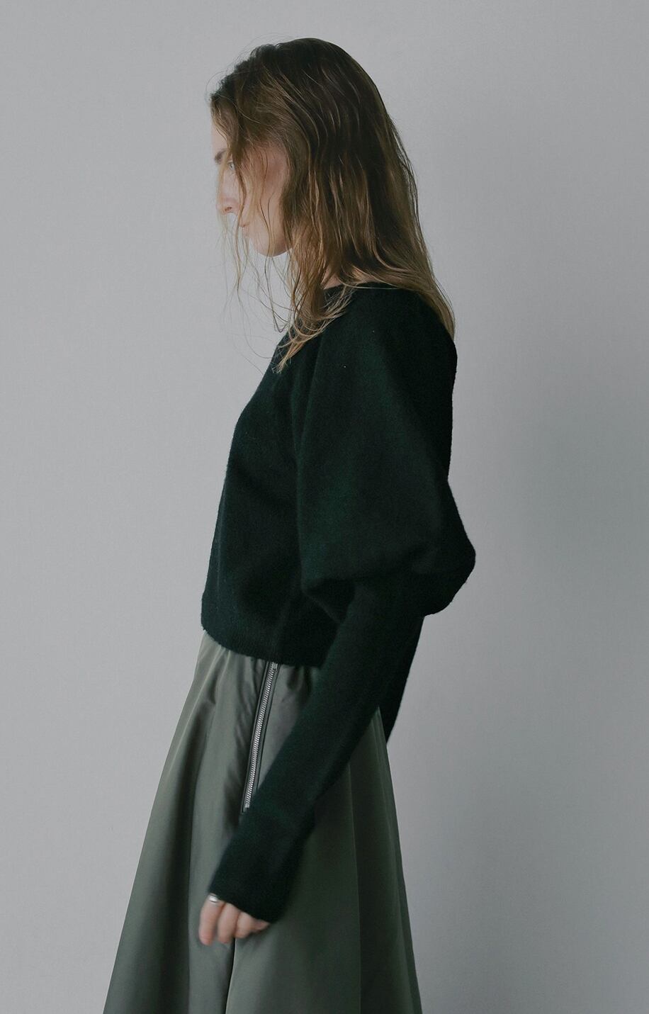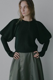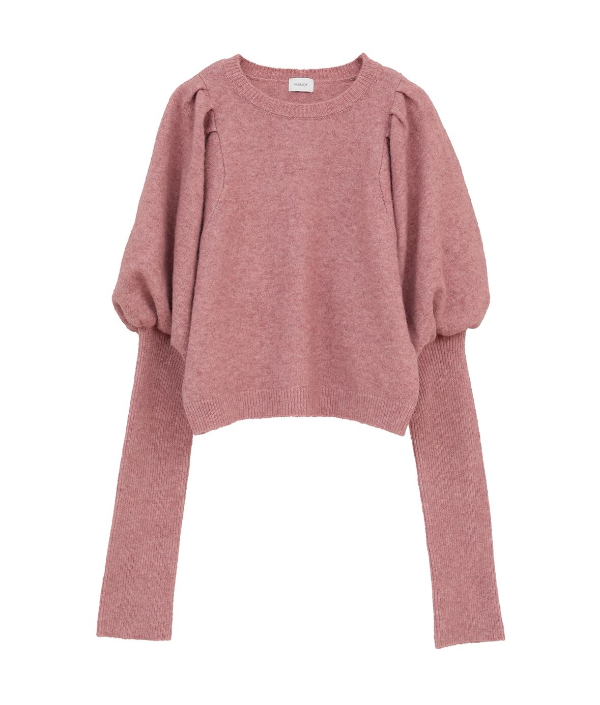 肘上までのパフスリーブが特徴的なニットプルオーバー。