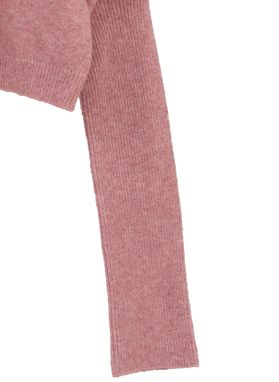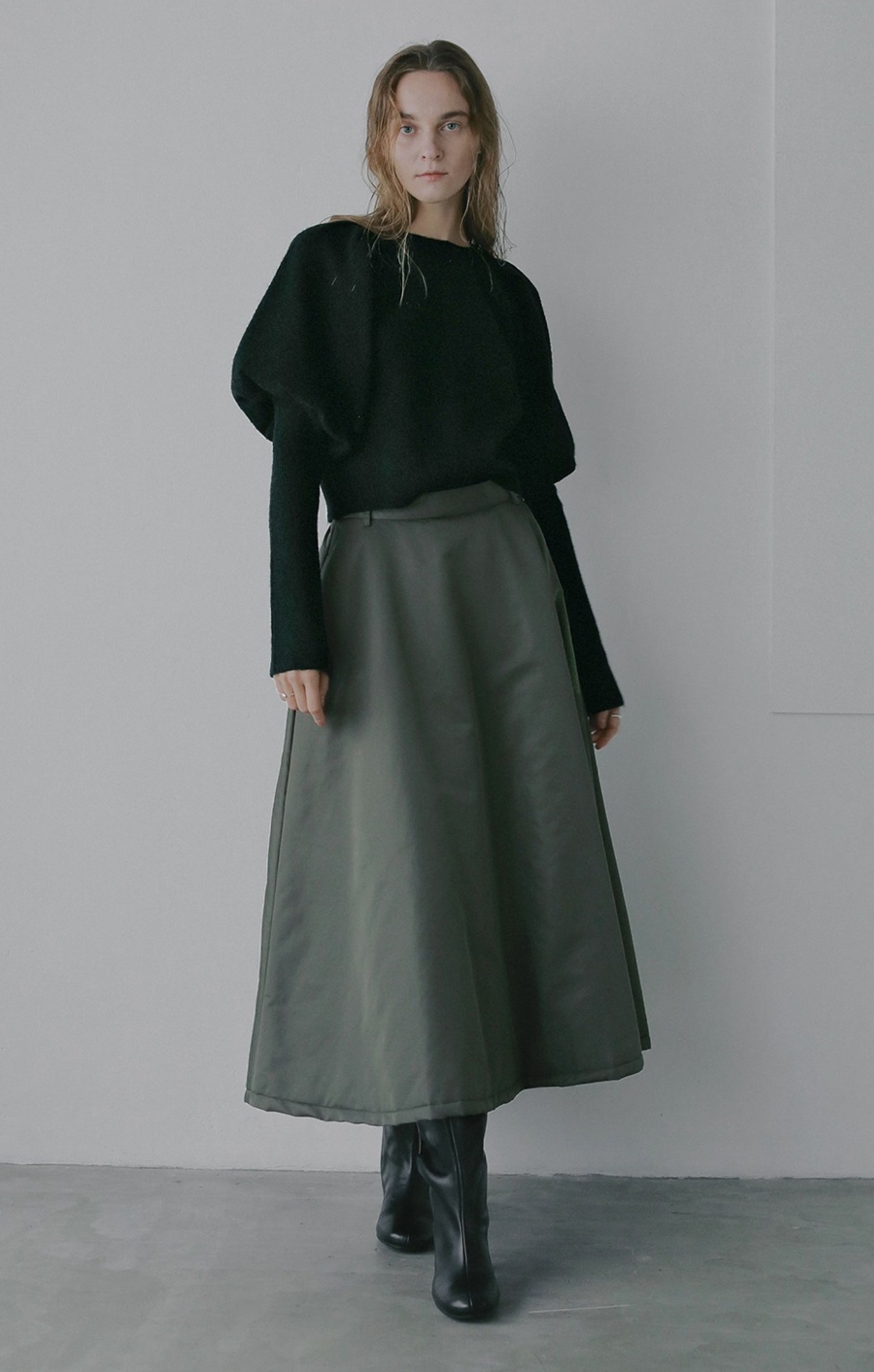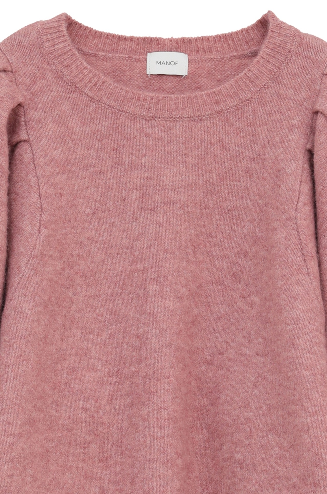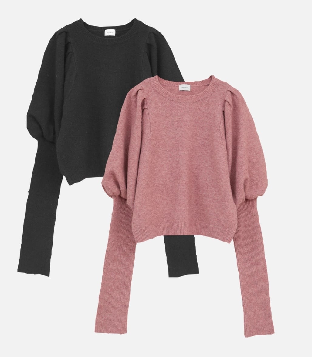 肘上までのパフスリーブが特徴的なニットプルオーバー。