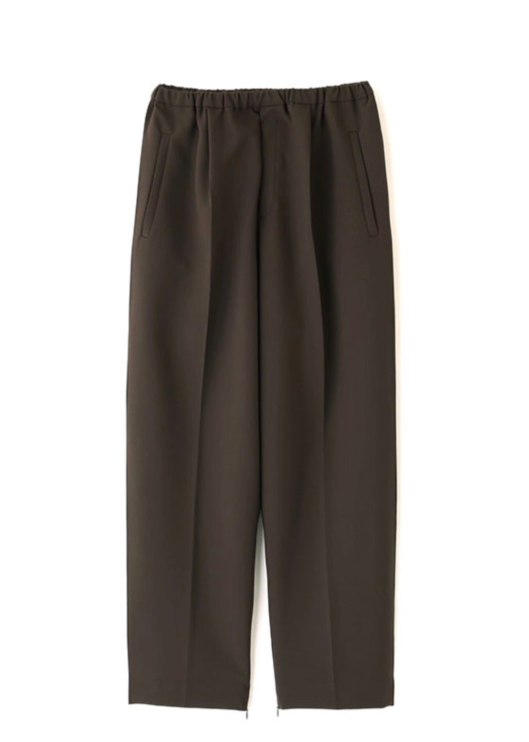 ポリエステルをベースにレーヨンとポリウレタンをブレンドしたダブルクロス生地を使用、 しなやかな落ち感とほど良いハリを兼ね備えた素材感が特徴で、動きに合わせて美しいドレープを描きながらも、 日常使いしやすい快適な穿き心地を叶えます。