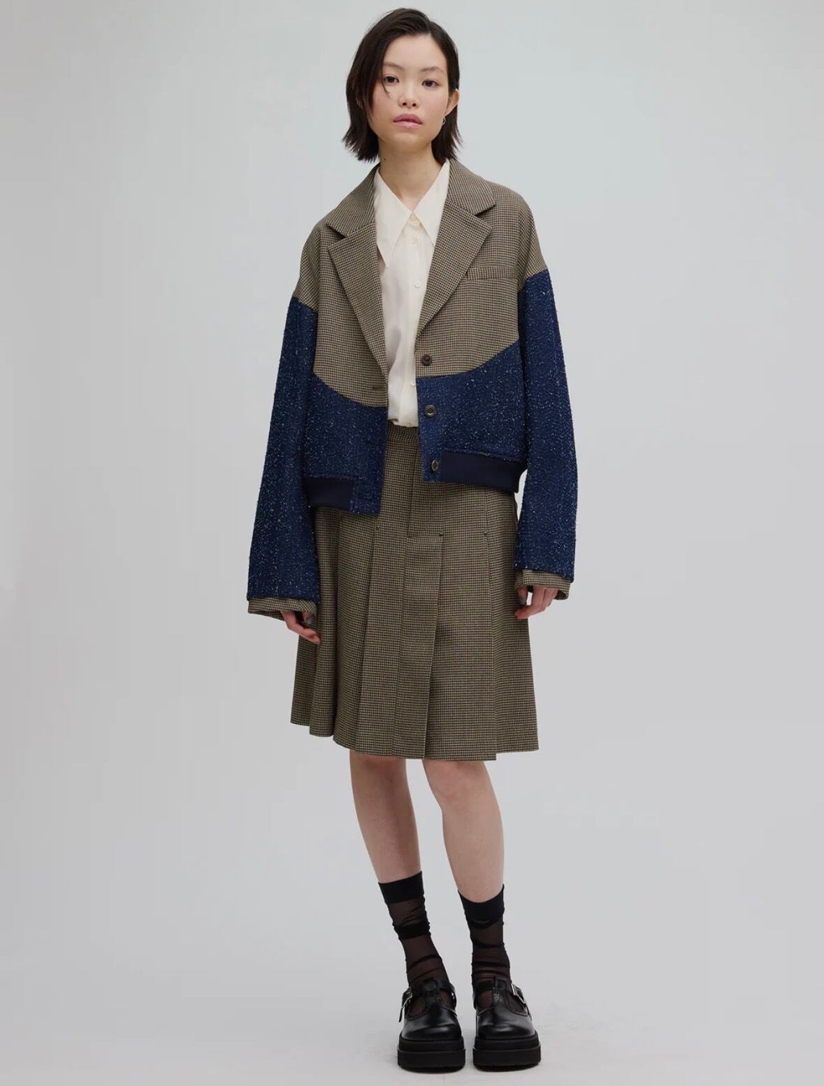 千鳥柄のマルチとシンセティックレザーのブラックで素材が異なり、選ぶカラーで印象の変わるアイテム。