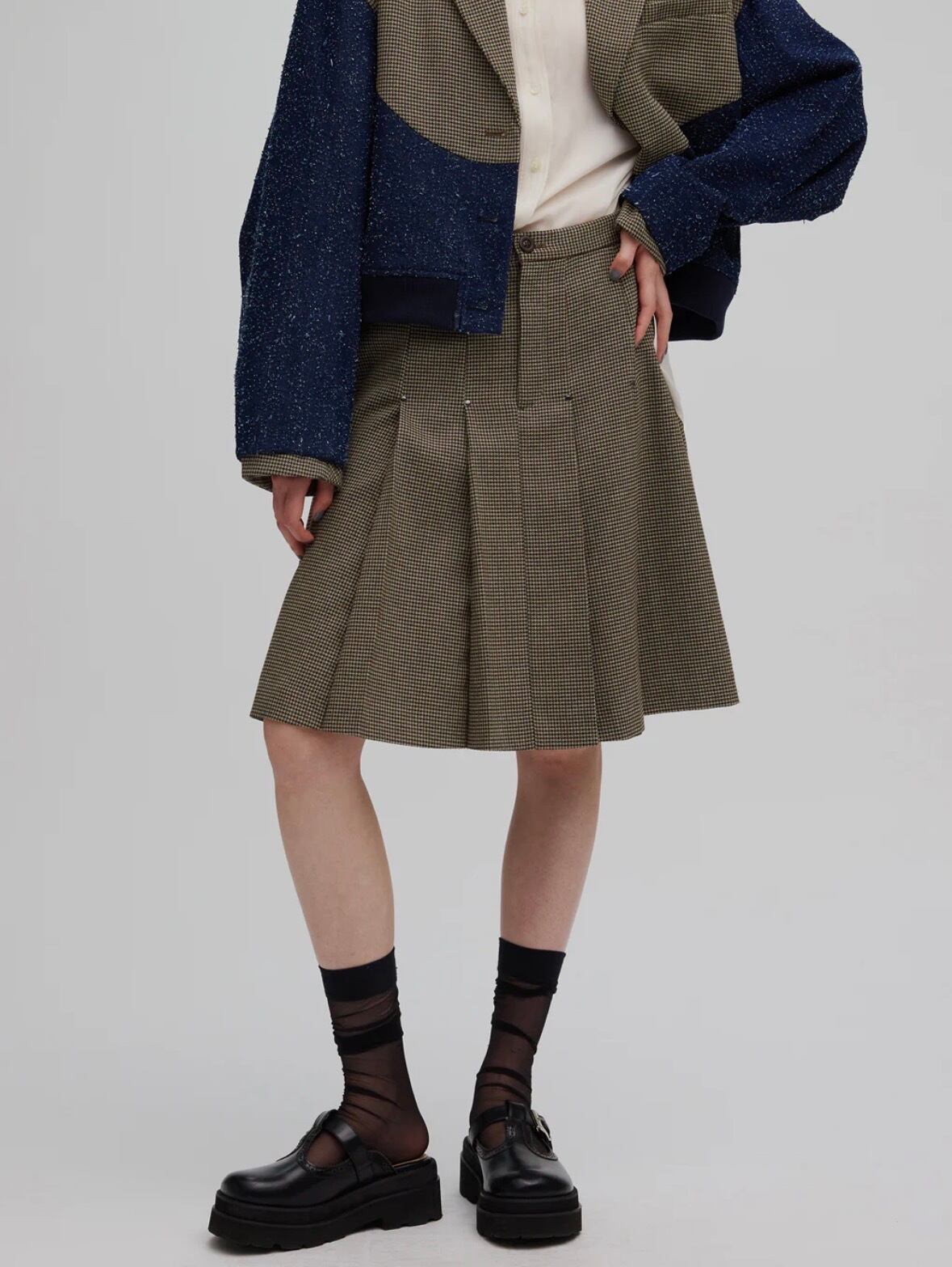 プリーツ留まりに付けた金属のハトメがエッジを効かせたポイントです。