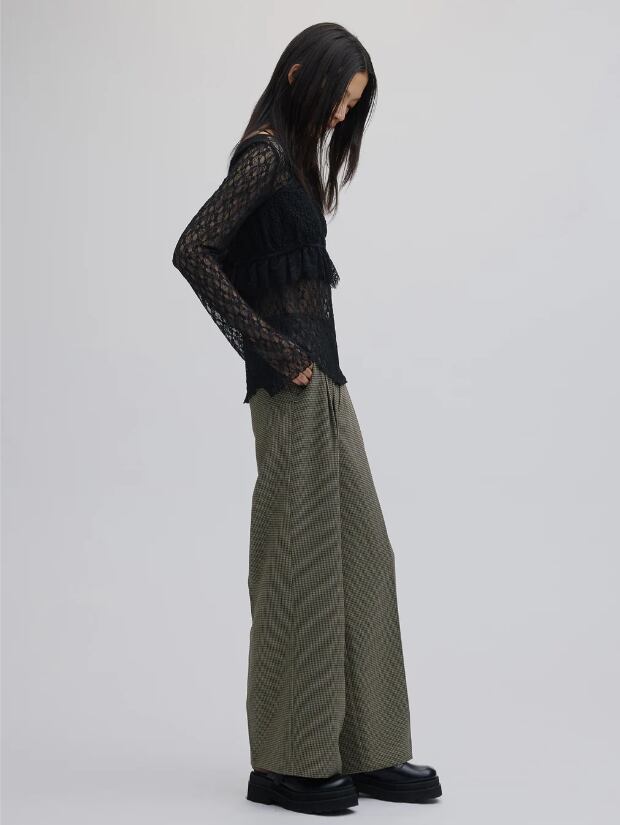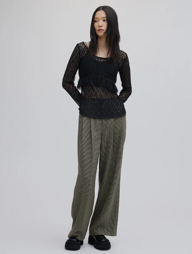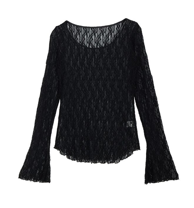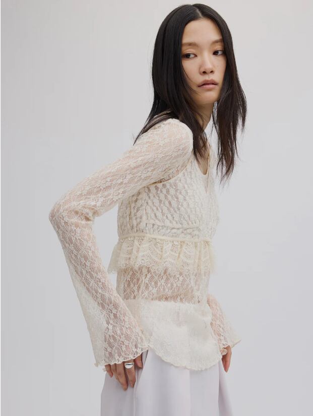 インナーは大きめに開いた襟ぐりとベルスリーブの袖がポイント。