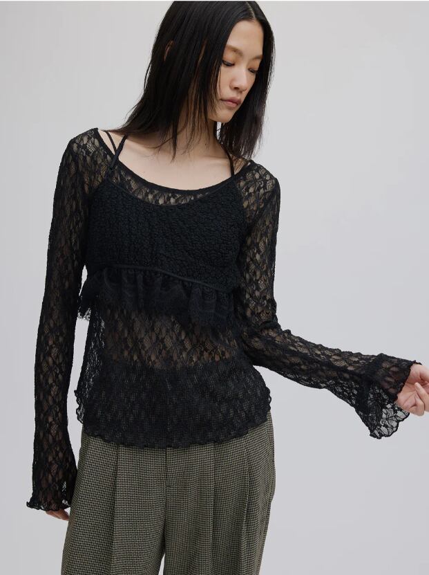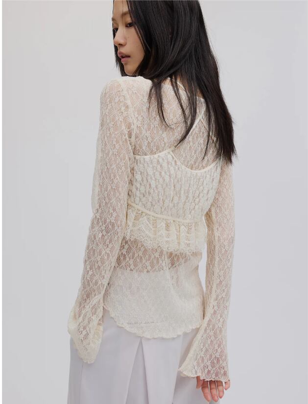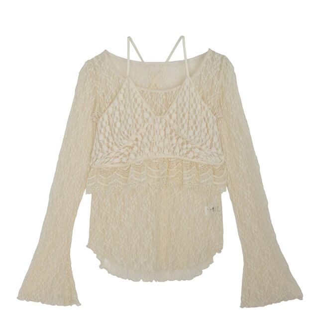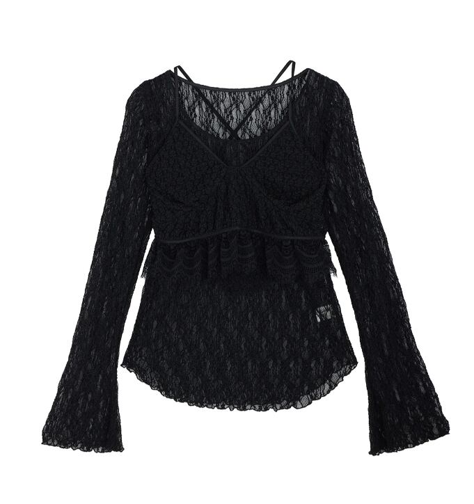カットソーレースを使用したビスチェセットのトップス。