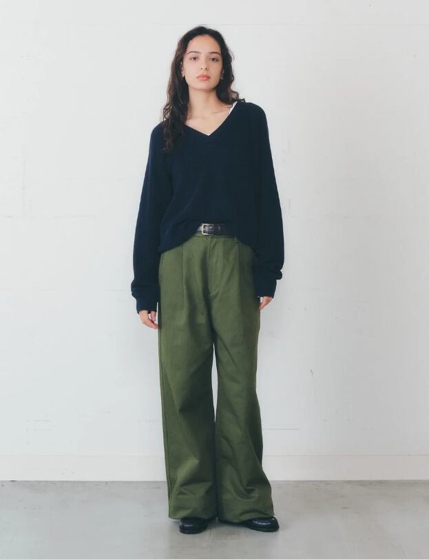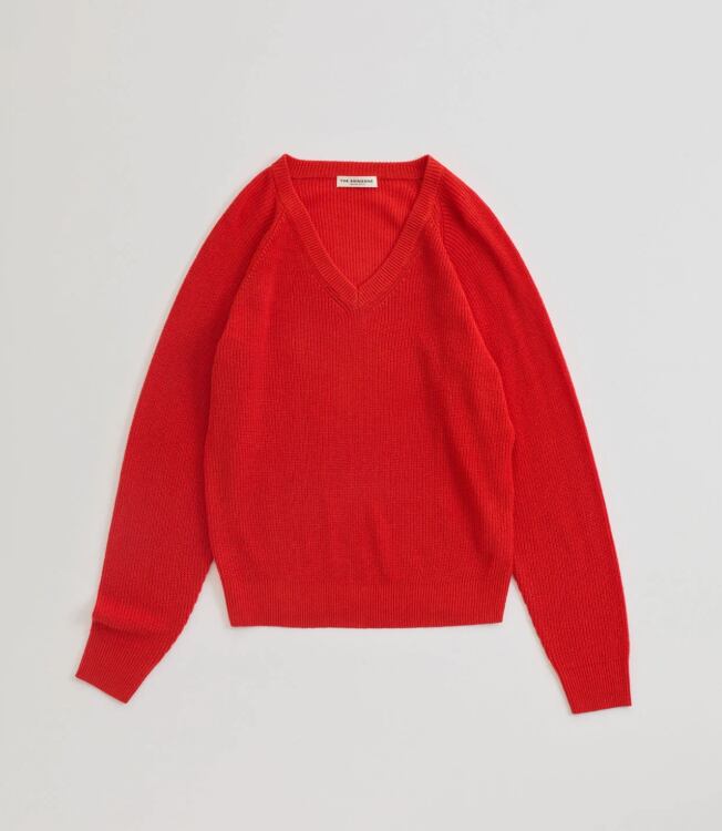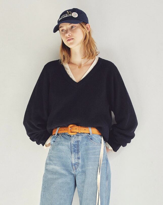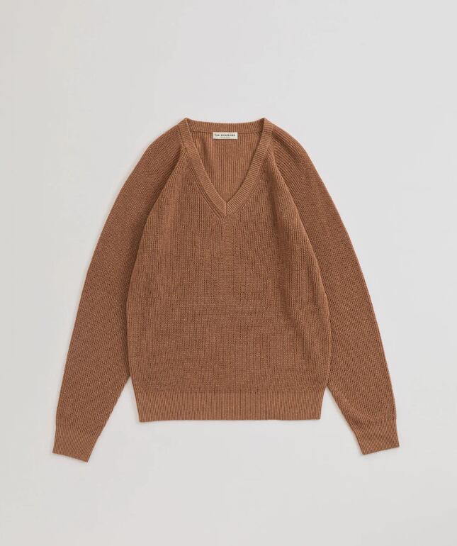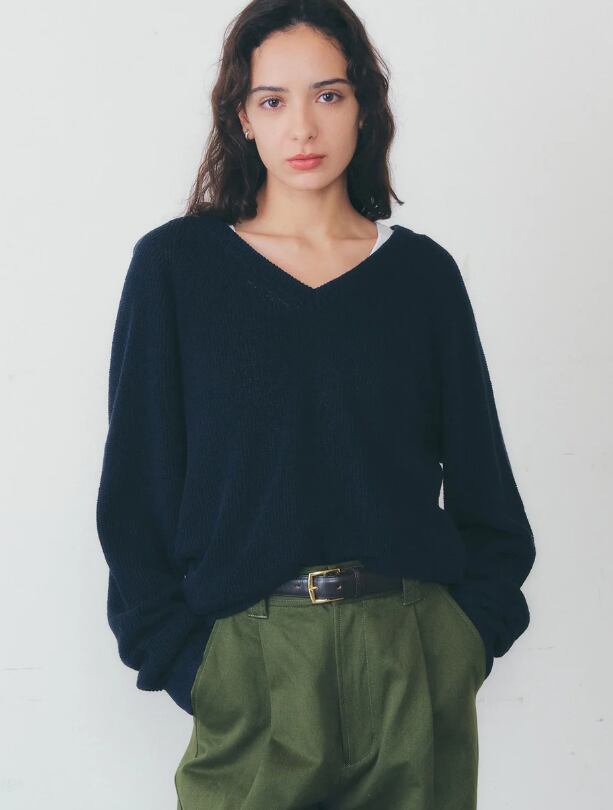 ふくらみと独特なシャリ感が特徴的な畦編みのVネックプルオーバーニットです。