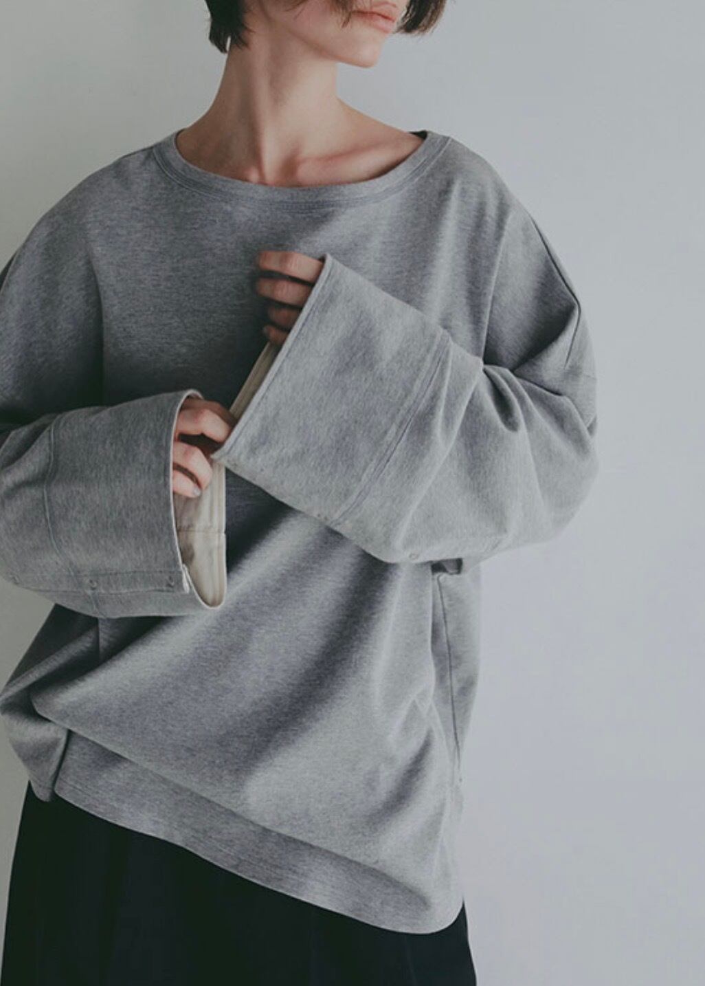 表面がなめらかで落ち感のあるスムース素材が生み出す、上品なニュアンスが魅力のカフスロンTee。