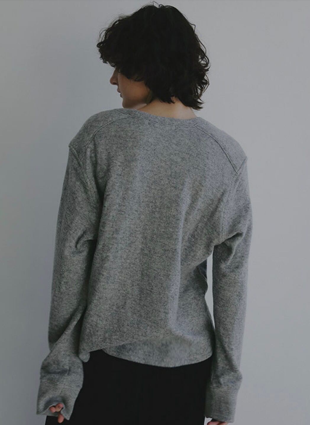 表側には反毛素材を用いたウォーム感のある生地を採用し、ふっくらとした風合いと奥行きのある表情が魅力で、裏側には綿混素材を使用することで、素肌に触れた際もやさしく、ストレスのない着心地に仕上げています。