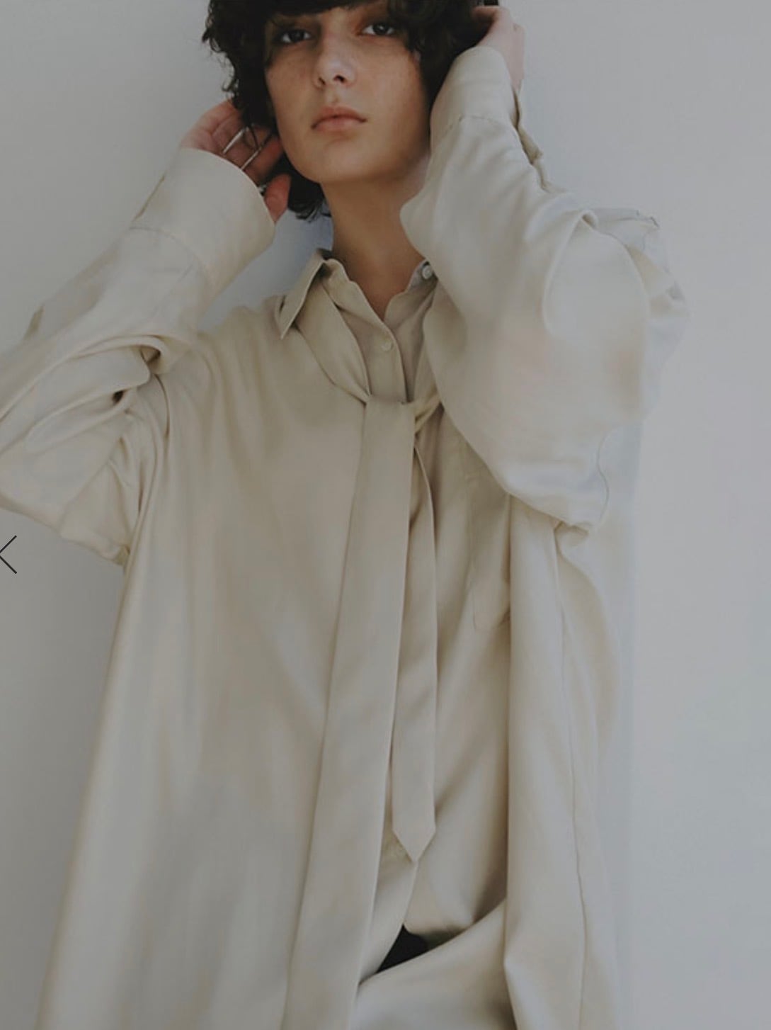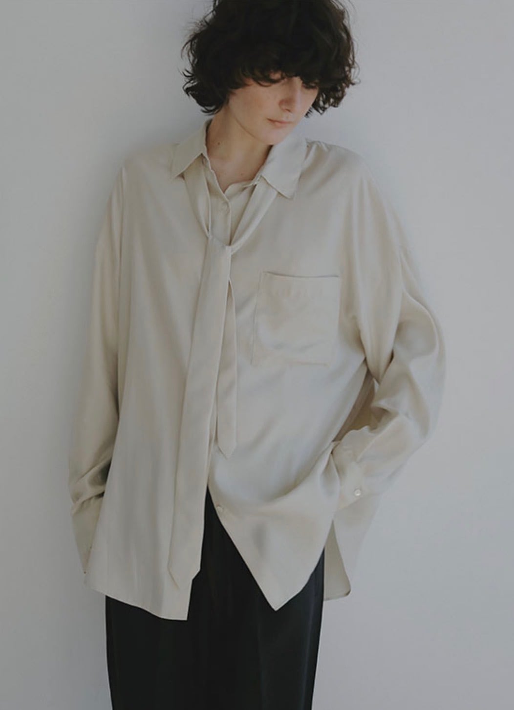 しなやかな落ち感と上品な光沢が魅力のキュプラ素材が、洗練されたムードを演出するネクタイ付きシャツ。