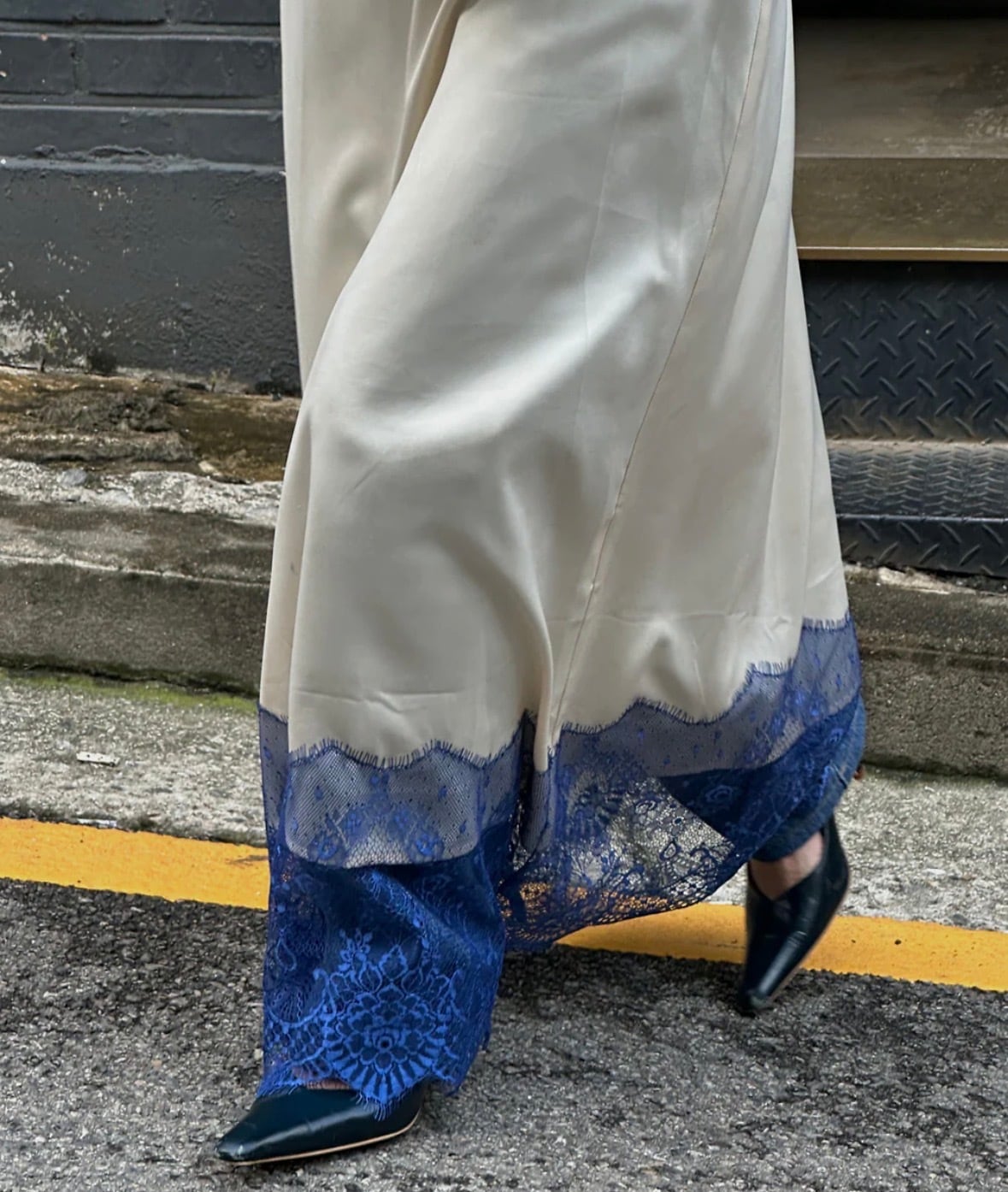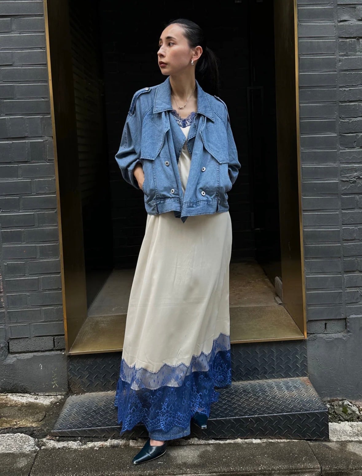 フロント横のスリットを開けて、インナーのレースを見せた着こなしがおすすめです。
