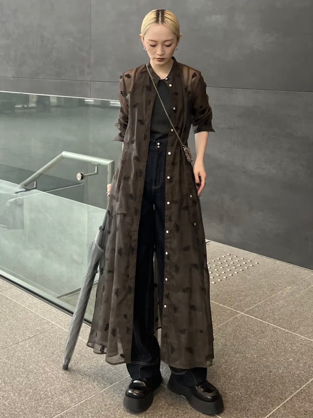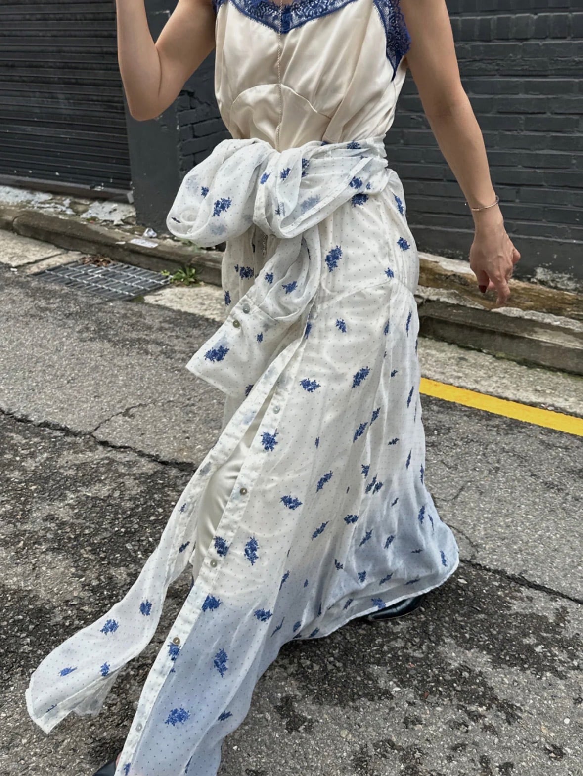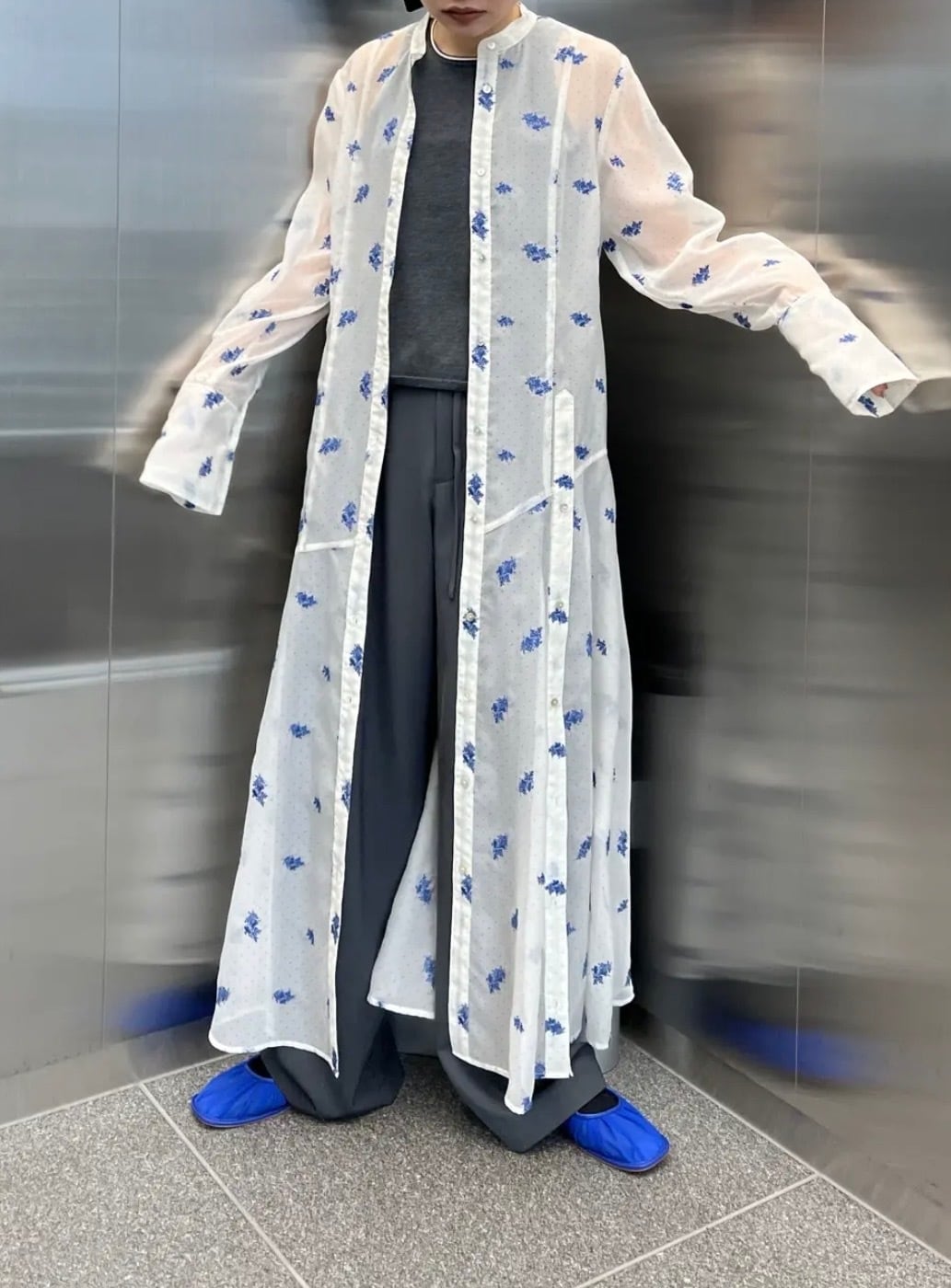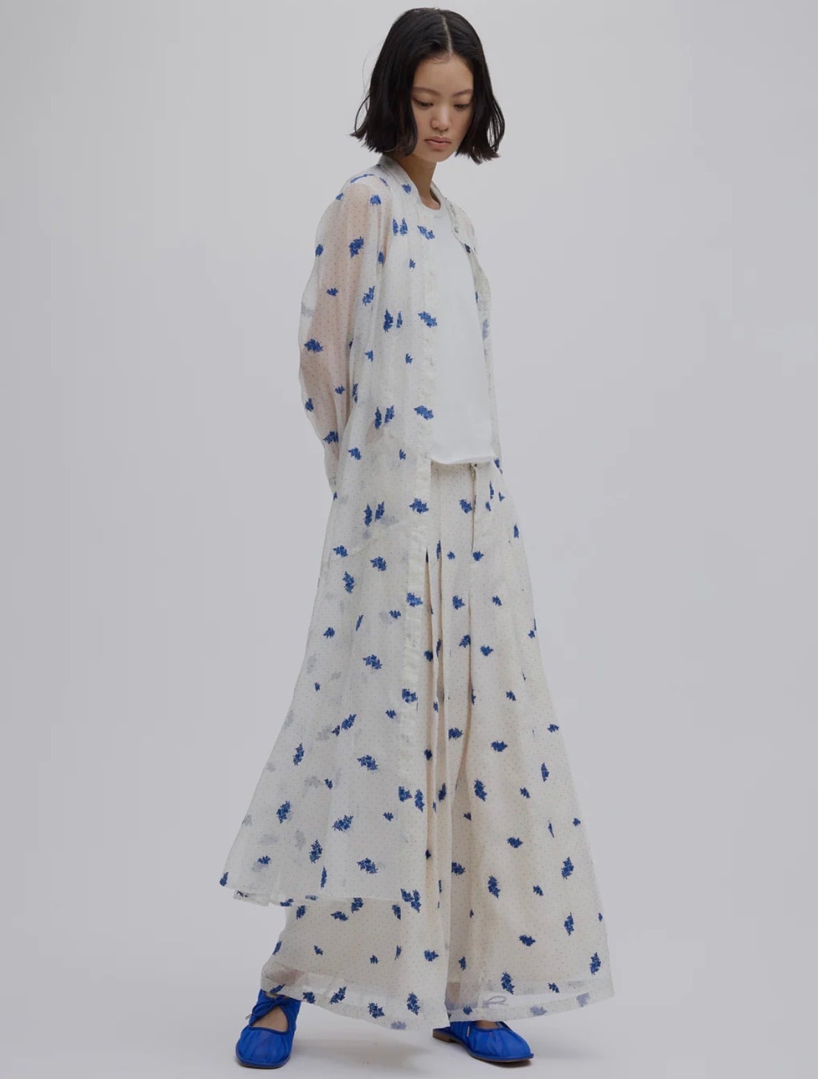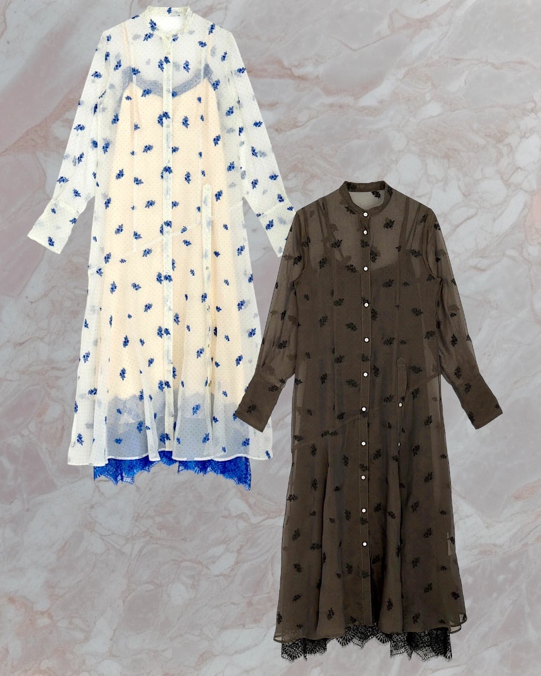 シアーのシフォン素材に小花柄刺繍とドットプリントを施し、春夏らしくキャッチーな見た目に。