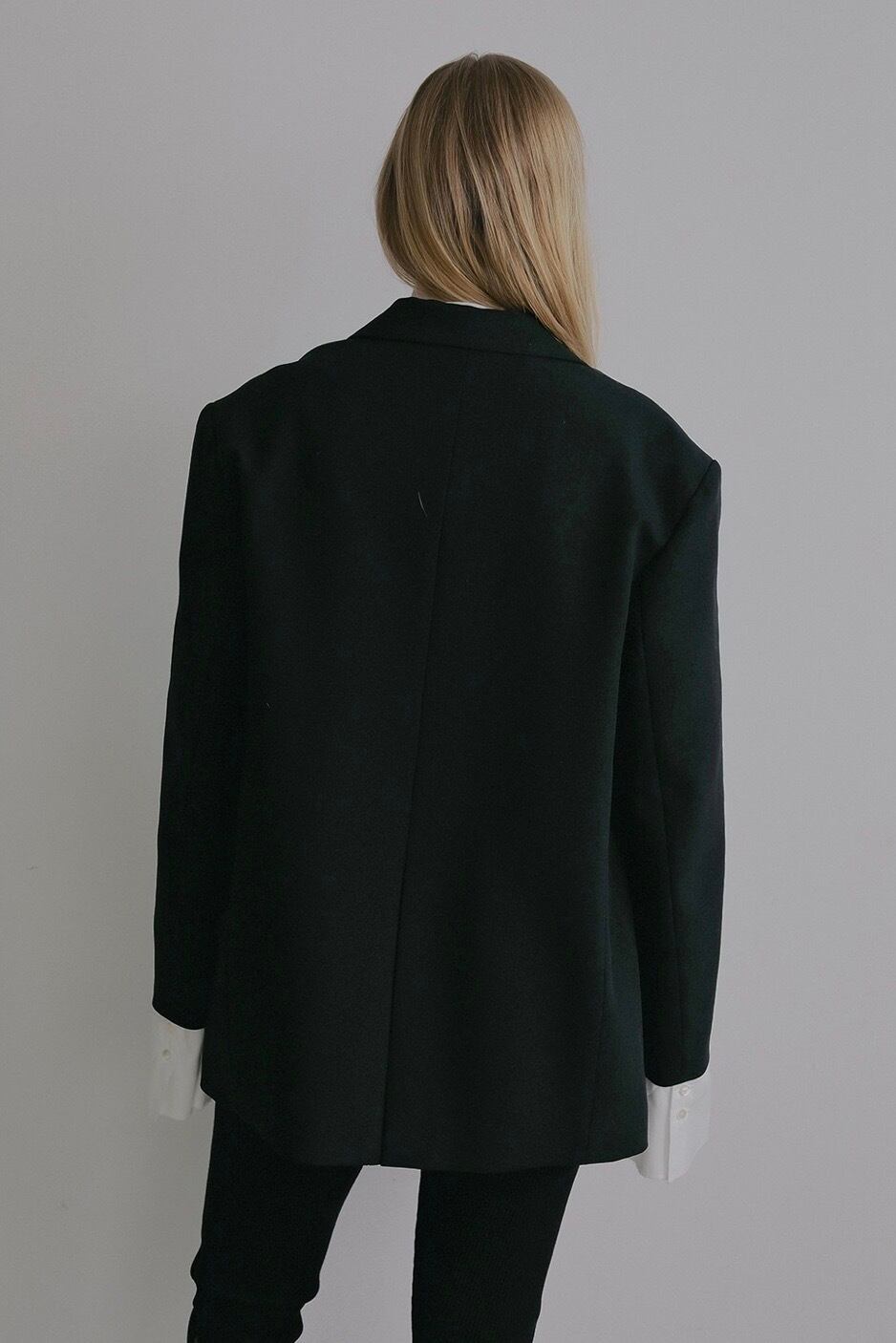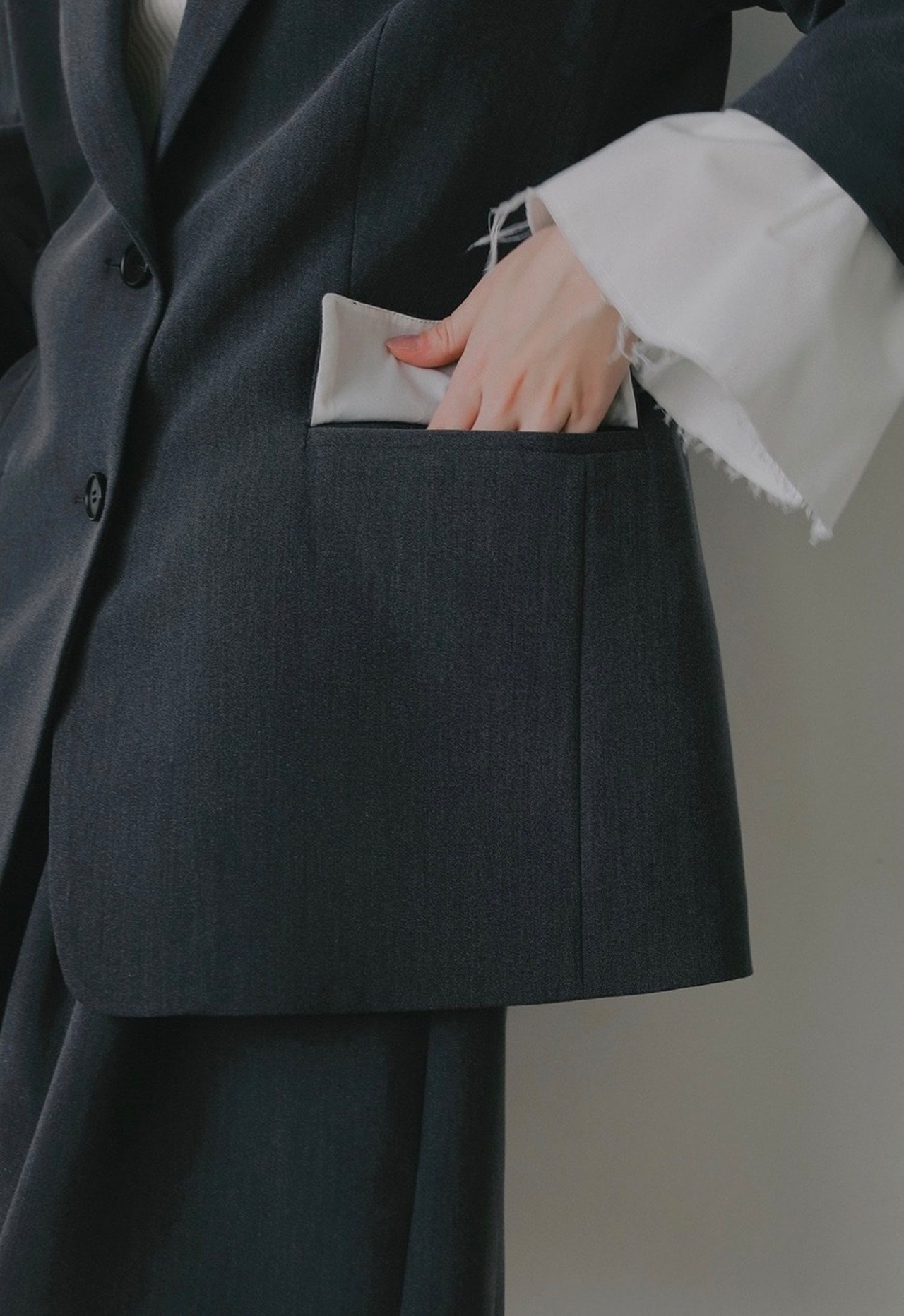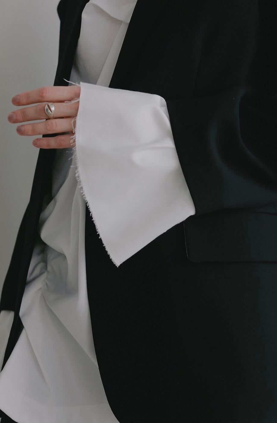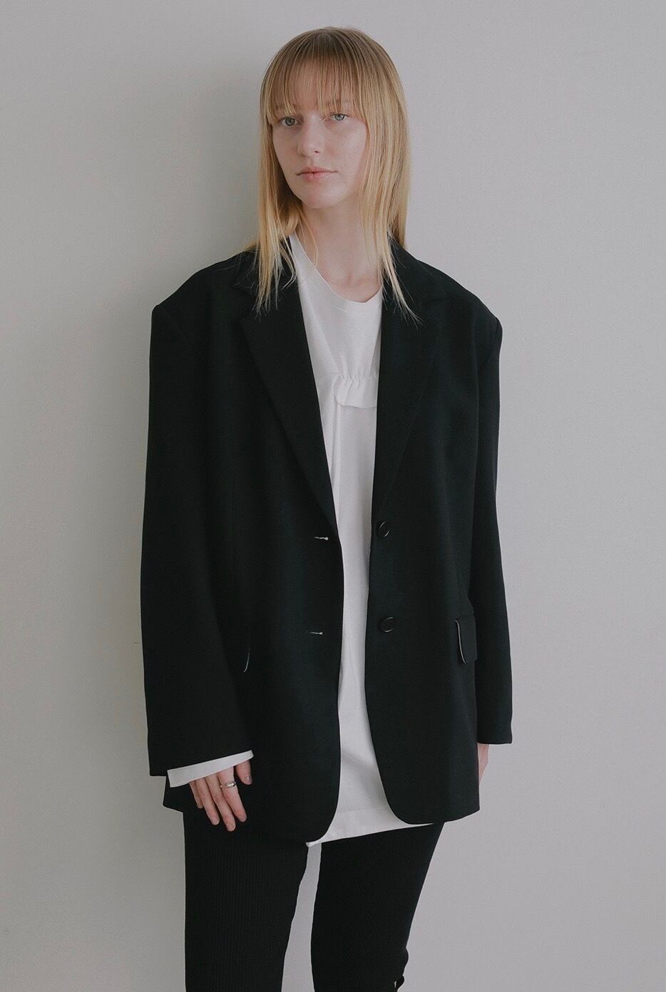 ハリのあるスパンタッチのマットなダブルクロス素材を使用し、きちんとした見え感ながらも肩を落とした抜け感のあるシルエットが魅力。