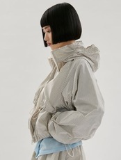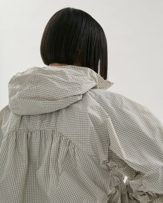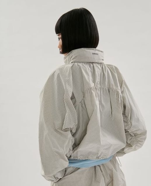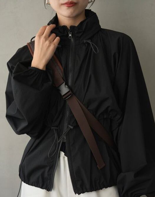 袖にはギャザーを入れて、動きやすさとシルエットのアクセントを両立。ダブルジップ仕様で温度調整やスタイリングの幅も広がり、フードは衿にスマートに収納可能。ワークアウト後の羽織りや、街中での軽快なスタイルにもフィットする、機能性とデザイン性を兼ね備えた一枚です。