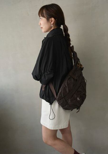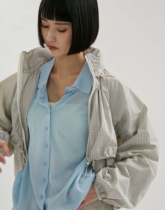 軽量でエアリーな着心地が魅力のナイロンブルゾン。程よい透け感とリップ素材の表面感が、スポーティなムードを演出します。