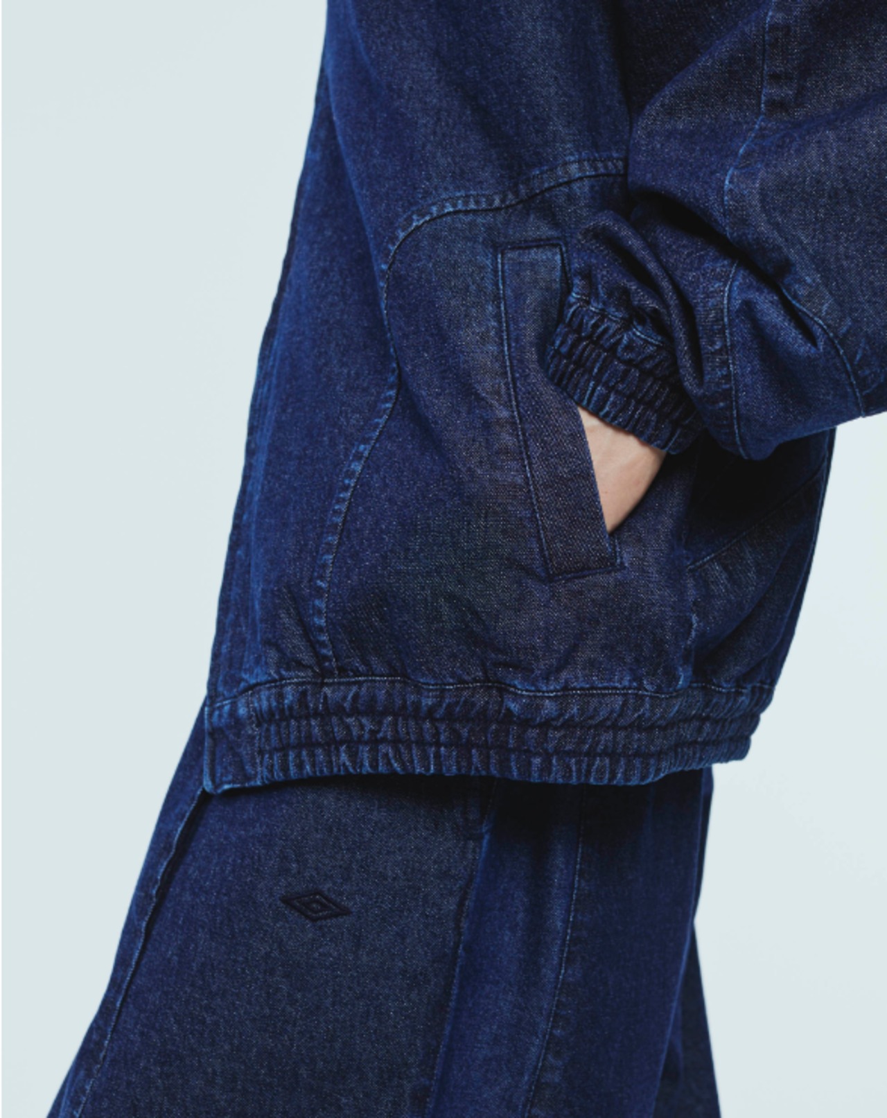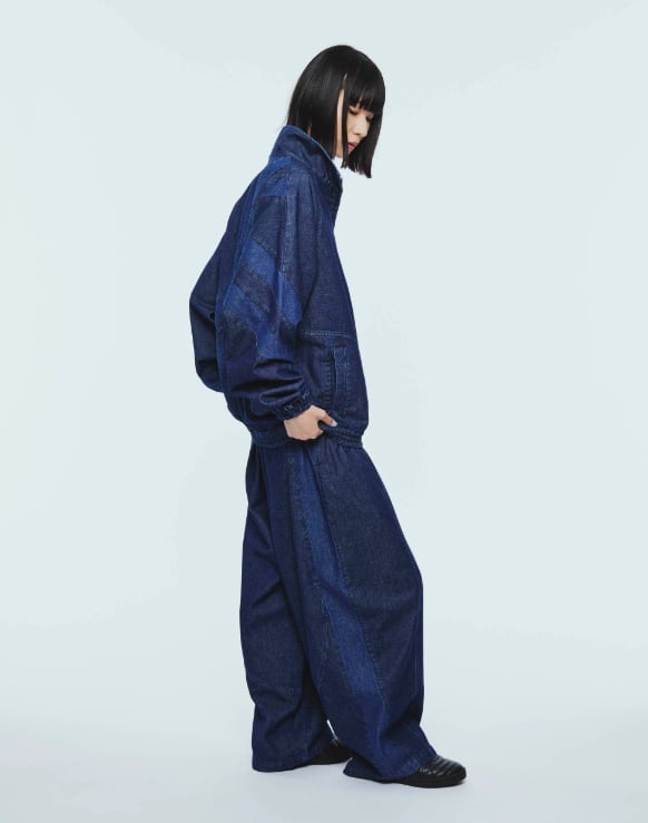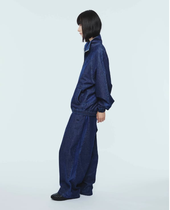 90年代初頭のUMBROを象徴する、トレーニングジャケットに見られた特徴的な“ダブルダイヤカッティング”を背面に施した一着。スポーティなディテールを踏襲しつつ、素材にはデニムを採用することで、日常使いに適したデイリーウェアへと昇華させています。