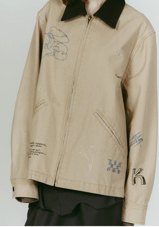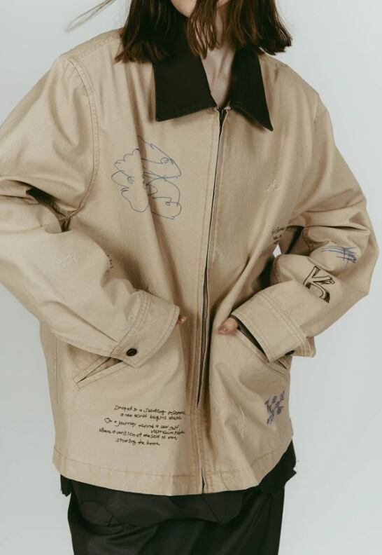 軽やかなライトジャケットに、落書きのように施された丁寧な刺繍。