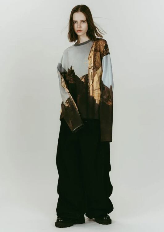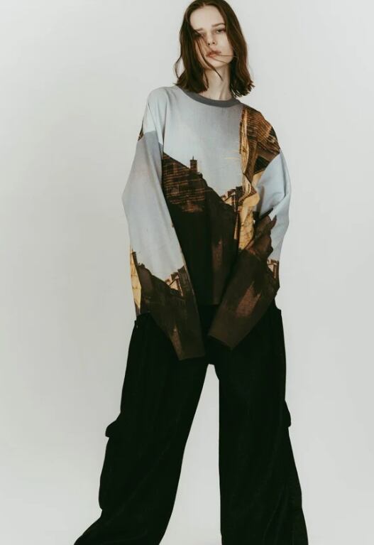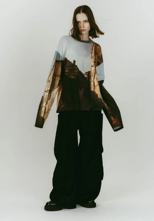 パリとクロアチアの風景を切り取り、グラフィックとして再構築したロングスリーブTシャツ。