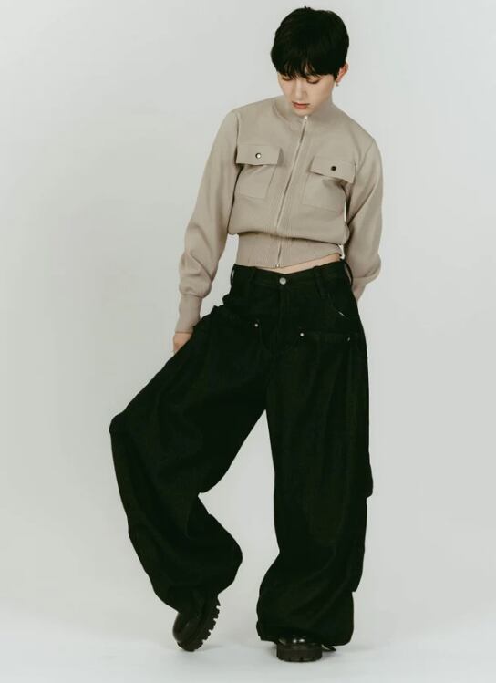 “低重心バランスでモードな印象"ウエストのディテールやポケットの立体構造が、