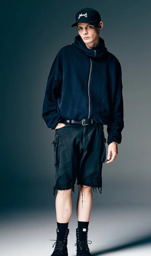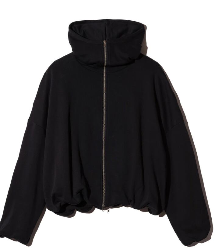 フーディのパターンを再考、イージーとエレガンスが同居する佇まいを作り上げたBalloon Zip Up Hoodie。裾と袖口にバルーン状のふくらみを持ったシルエットは、内側にリブをあしらい裏地から釣り上げる構造で形成。ドロップショルダーとオーバーサイズを掛け合わせ、ボリュームあるシルエットにまとめています。フルジップのボディからフードとハイネックを一体化させた造形もどこかフューチャリスティックな佇まい。テキスタイルには長めのループを備えた裏毛生地を使用し、軽やかな着心地をお楽しみいただけます。