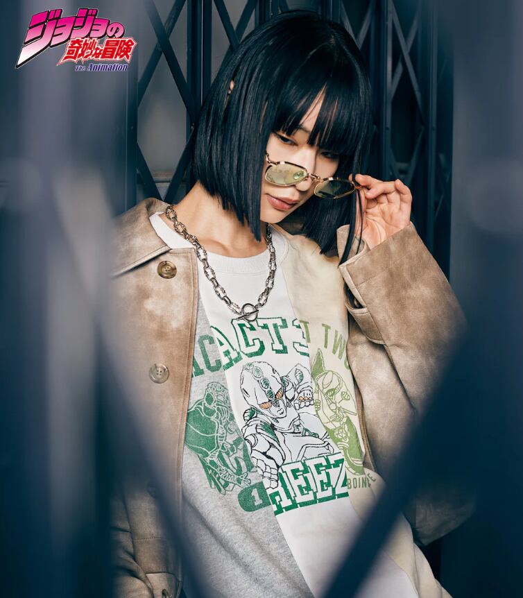アニメ『ジョジョの奇妙な冒険 ダイヤモンドは砕けない』とglambが三度目となるコラボレーションを発表。glambが得意とする切り替えデザインに広瀬康一のスタンド「エコーズ」の進化を連ねたKoichi's Stand Sweat。