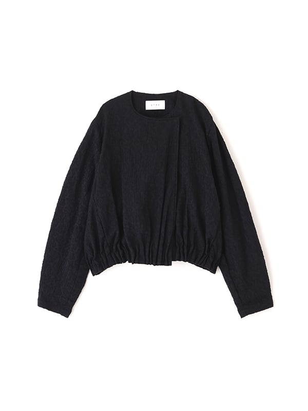 シルエットは袖に立体感を持たせ、裾にはゴムタックを施すことで自然なボリュームを演出。