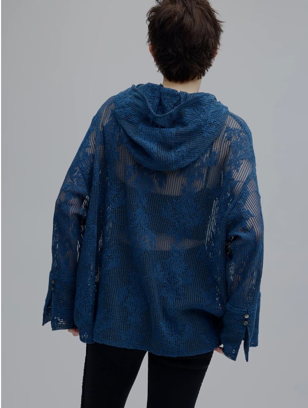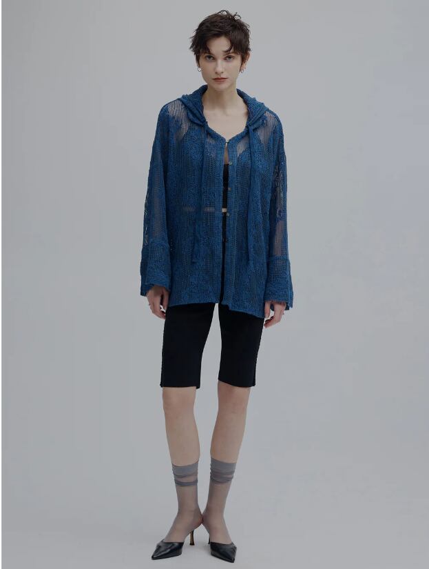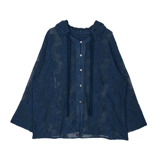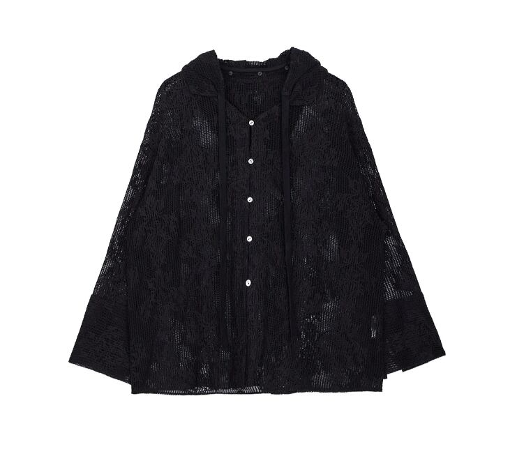 【AMERI】2WAY MESH DAMASK EMBROIDERY HOOD BLOUSE (0126104510800)