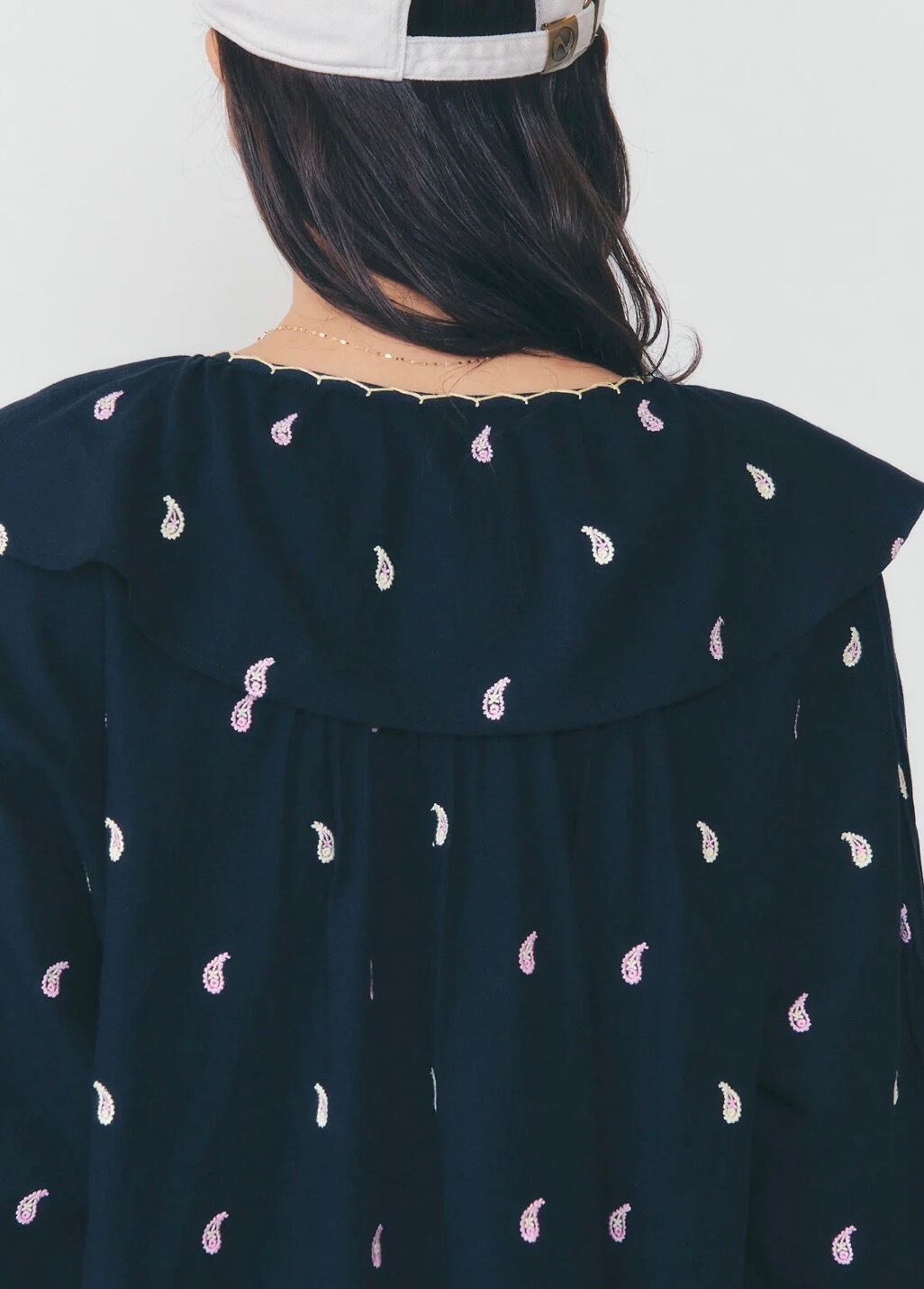 軽やかで程よい透け感のあるコットンジョーゼット生地を使用し、オリジナルのペイズリー柄を刺繍しました。
